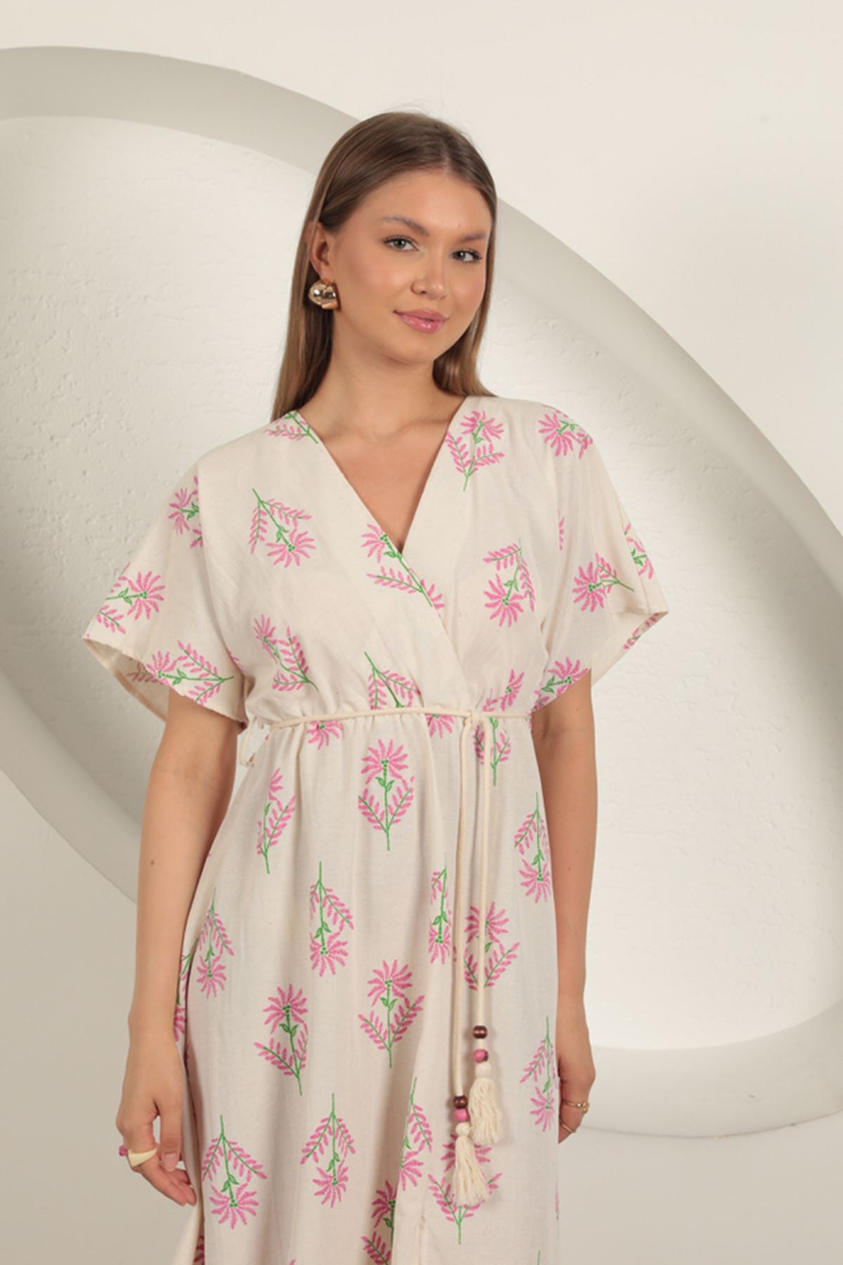 KKT Linen Fabric Floral Patterned Dress-Fuchsia - Parma