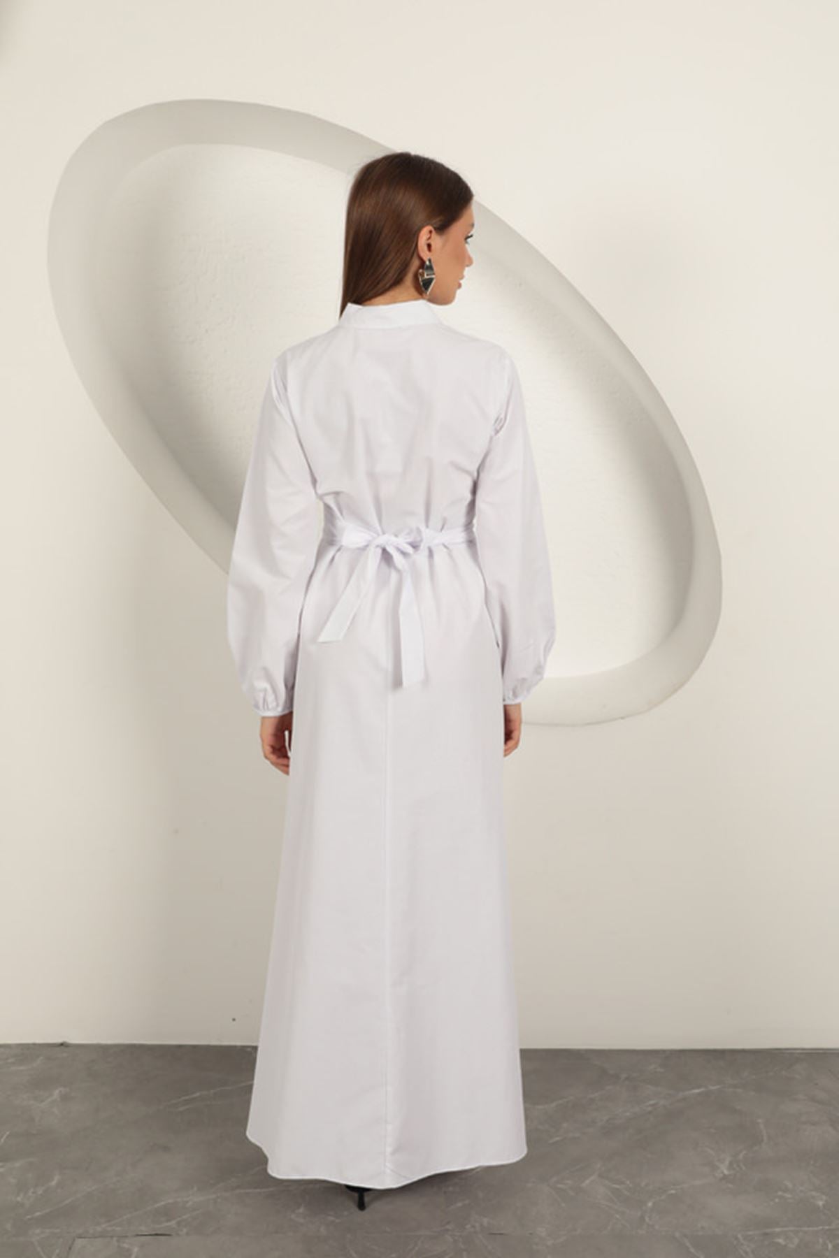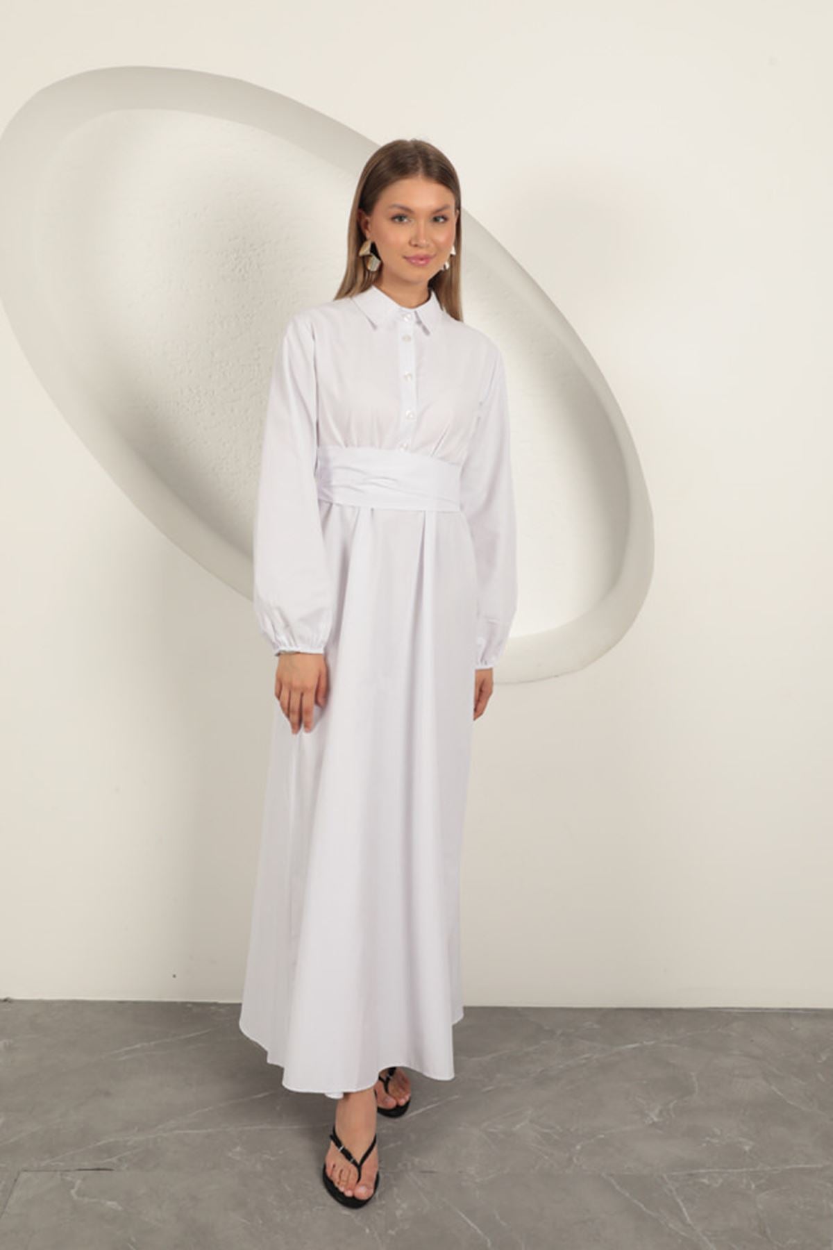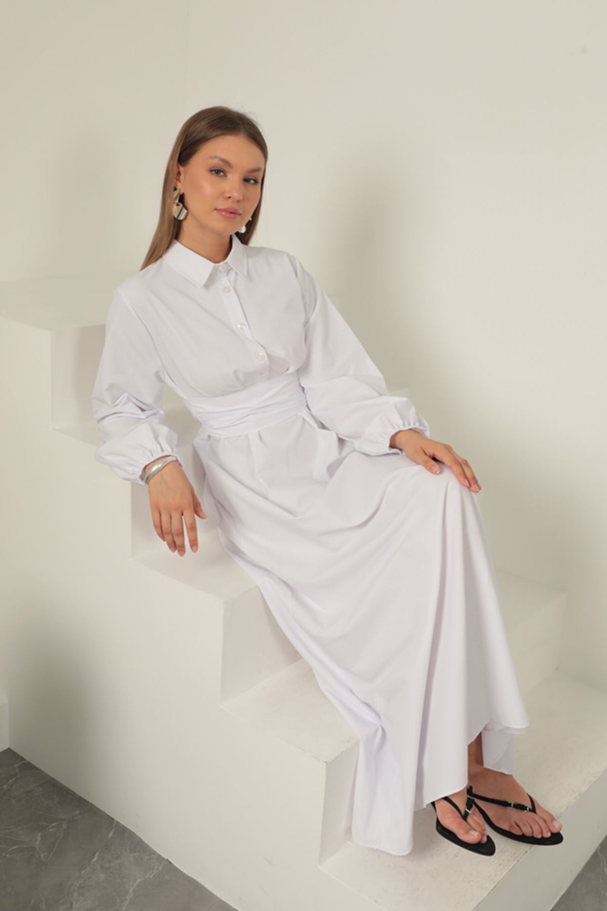KKT Poplin Fabric Tie Detail Dress-White - Clichy