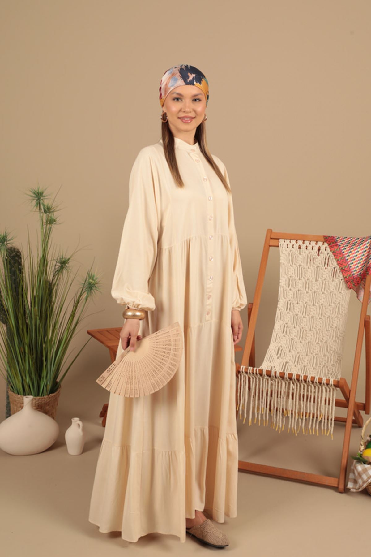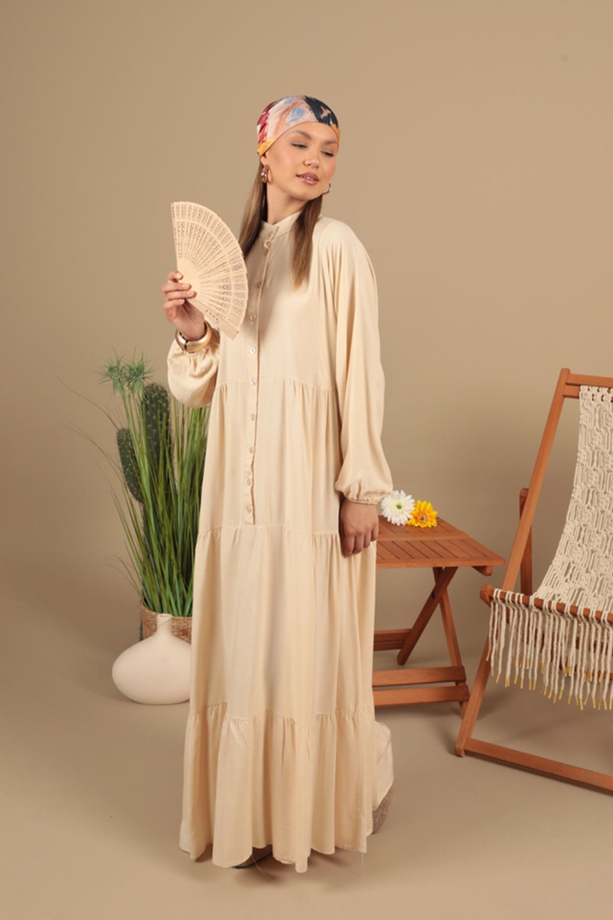 KKT Viscose Fabric Buttoned Dress-Beige - Lucerne