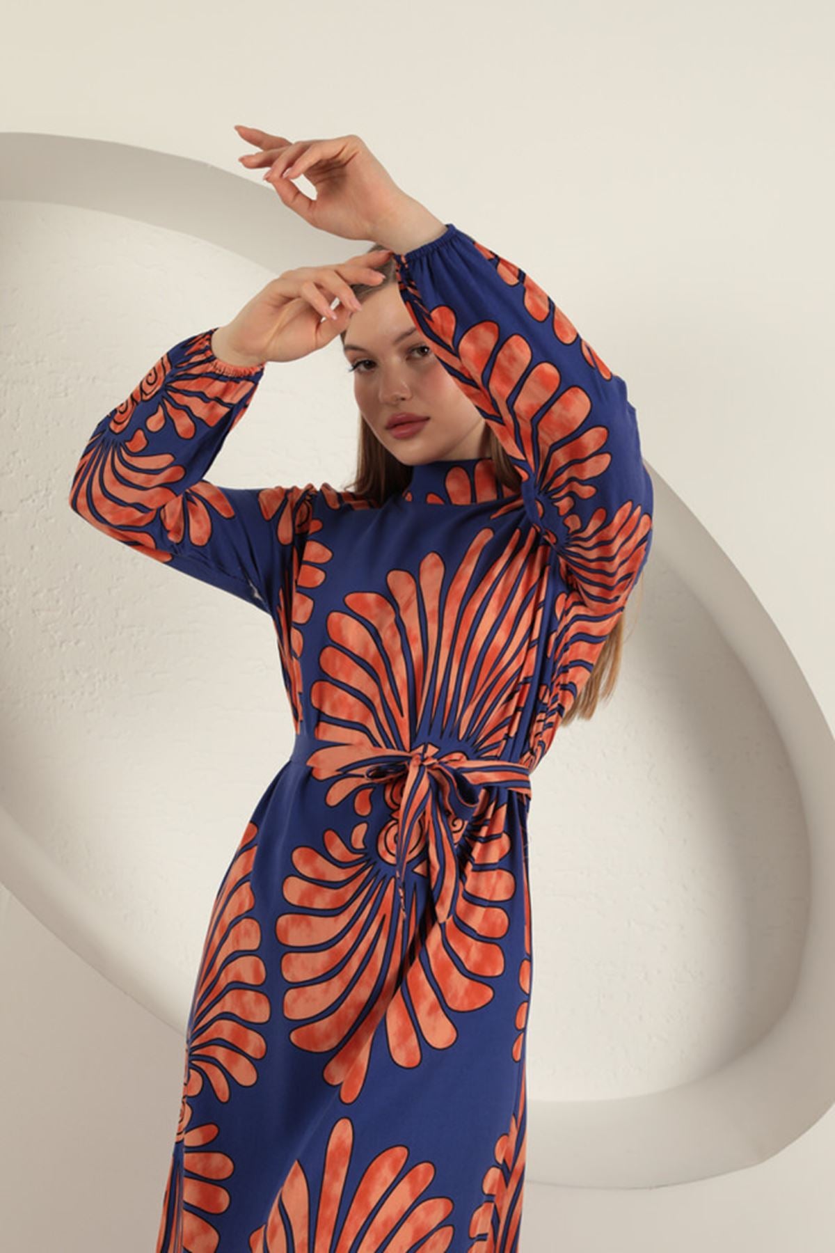 KKT Viscose Fabric Elastic Sleeve Dress-Purple - Florence