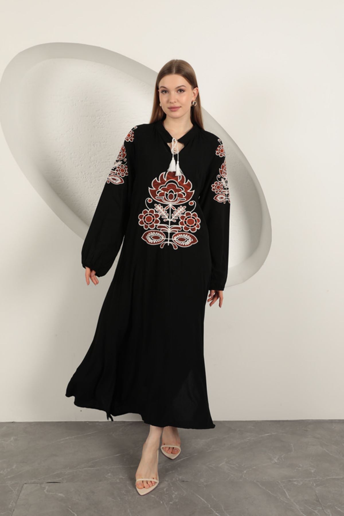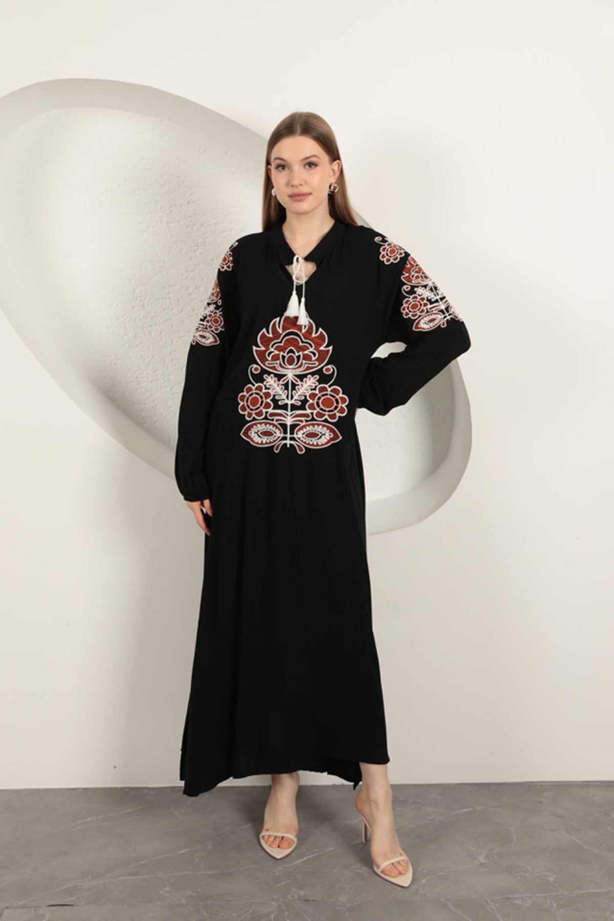 KKT Viscose Fabric Embroidered Dress-Black - Imola