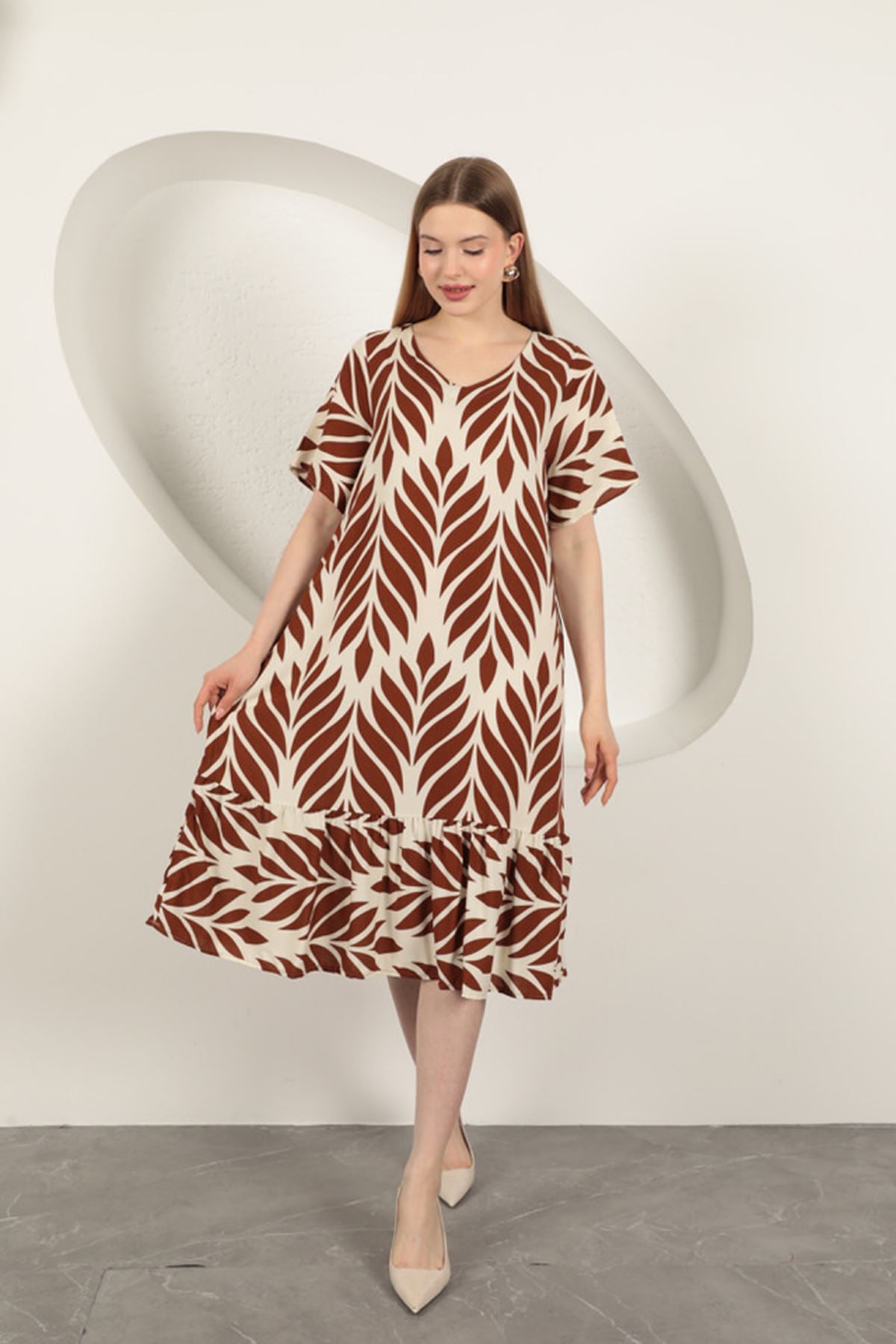 KKT Viscose Fabric Leaf Pattern Dress-Coffee - Beaverton