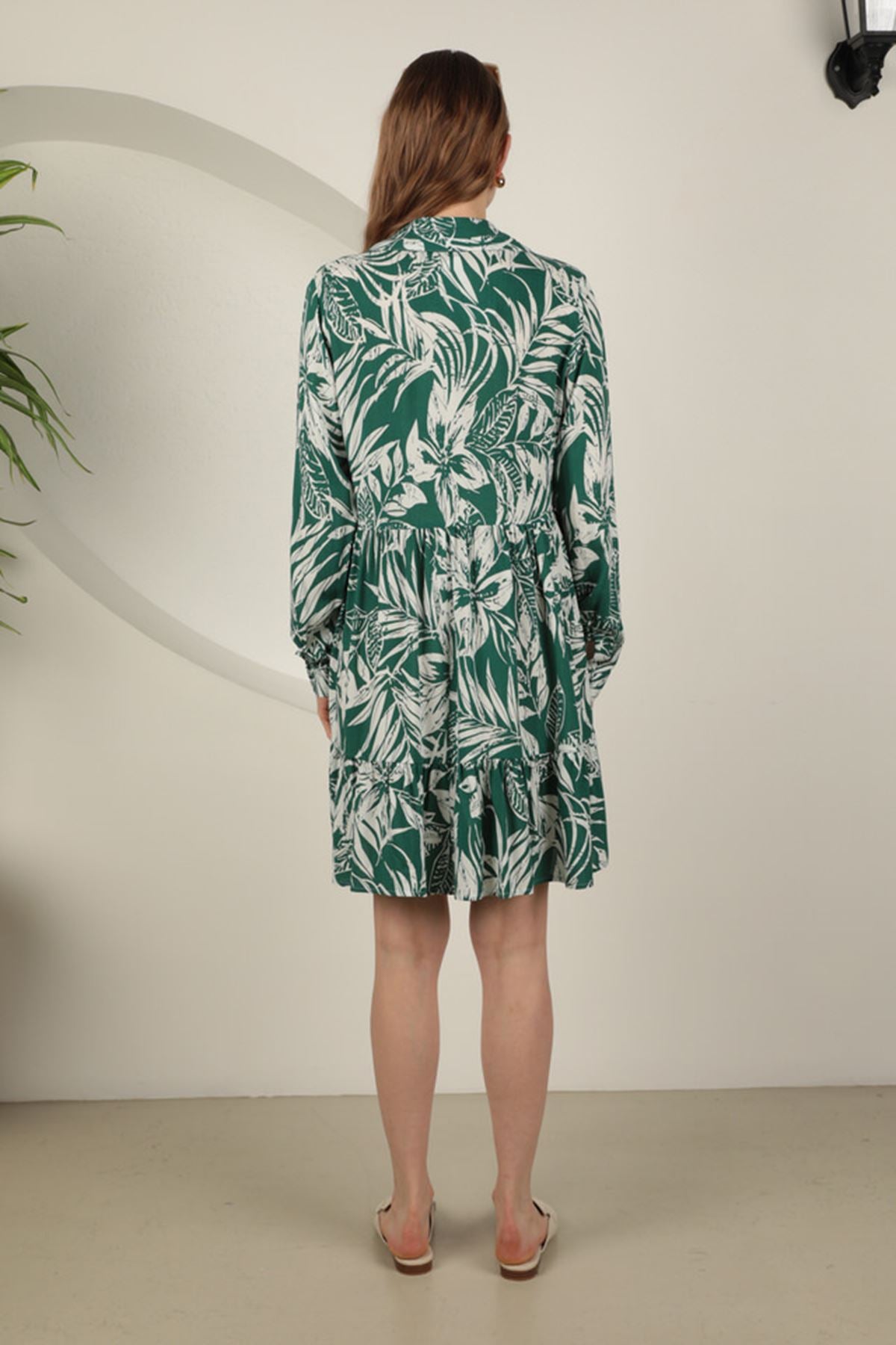 KKT Viscose Fabric Leaf Pattern Short Dress-Green - Tournai