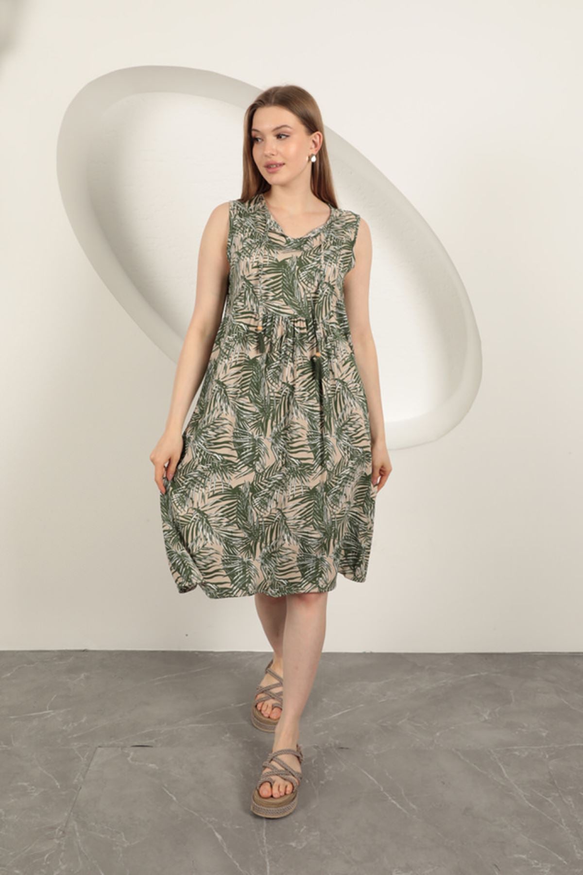 KKT Viscose Fabric Palm Tree Pattern Dress-Green - Winchester
