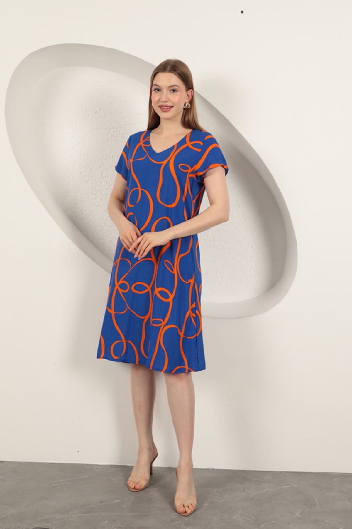 KKT Viscose Fabric Striped Patterned Dress-Sax - Desio