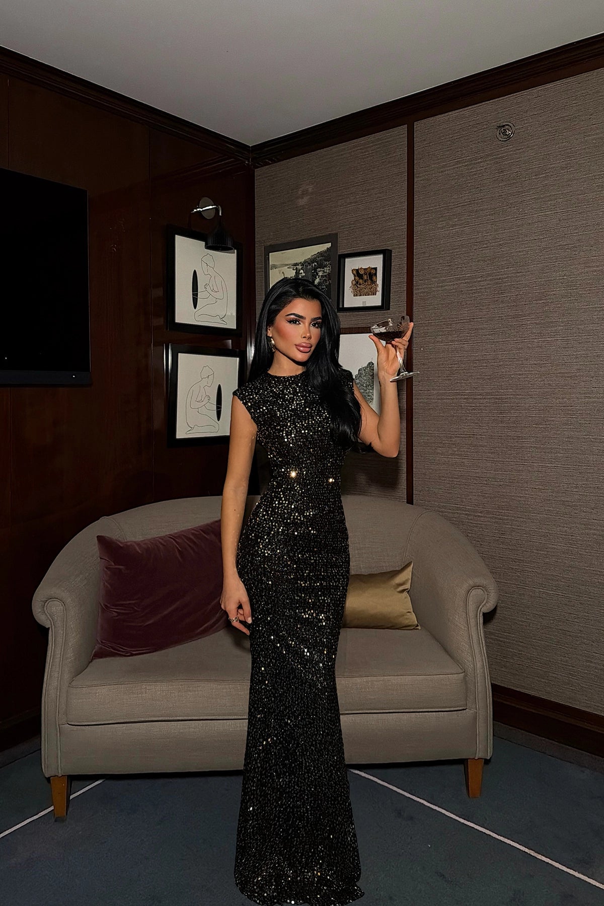 Gold Sequin Lordana Backless Long Dress