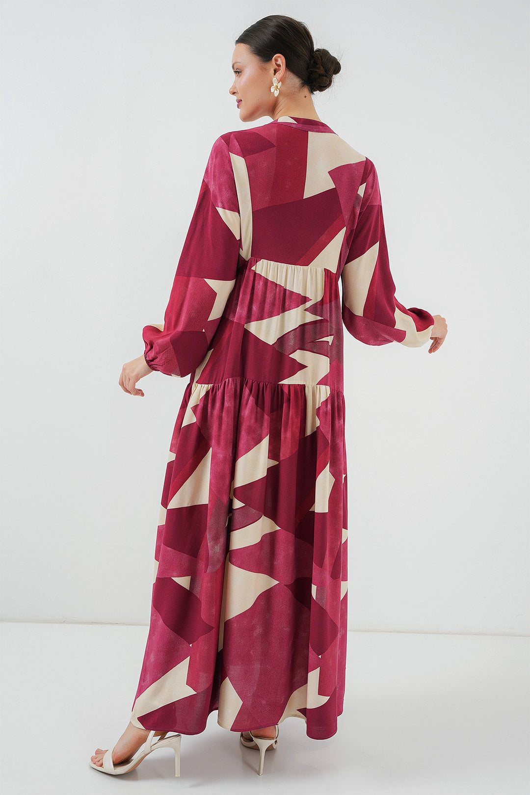BGD Women Authentic Patterned Hijab Dress - Burgundy - Charlotte