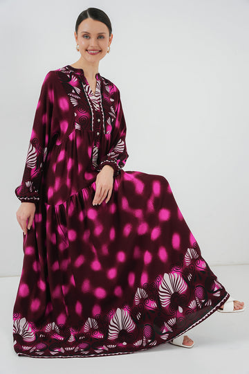 BGD Women Authentic Patterned Hijab Dress - Burgundy - Fuchsia - Courbevoic