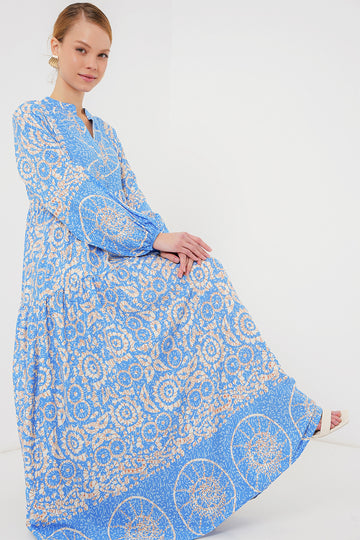 BGD Women Authentic Patterned Hijab Dress - S. Blue - Edina