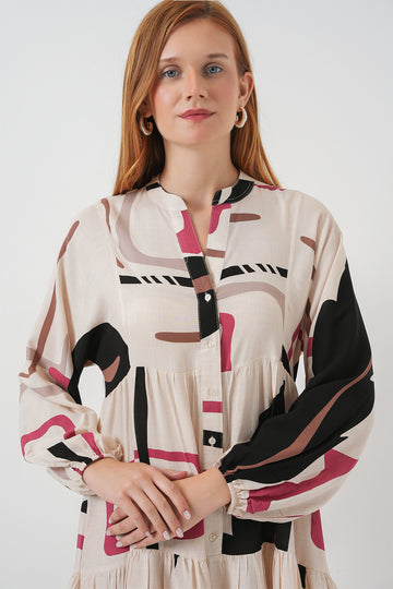 BGD Women Woman Patterned Long Hijab Dress 2585 - Cream - Rome