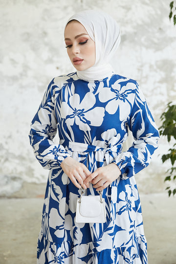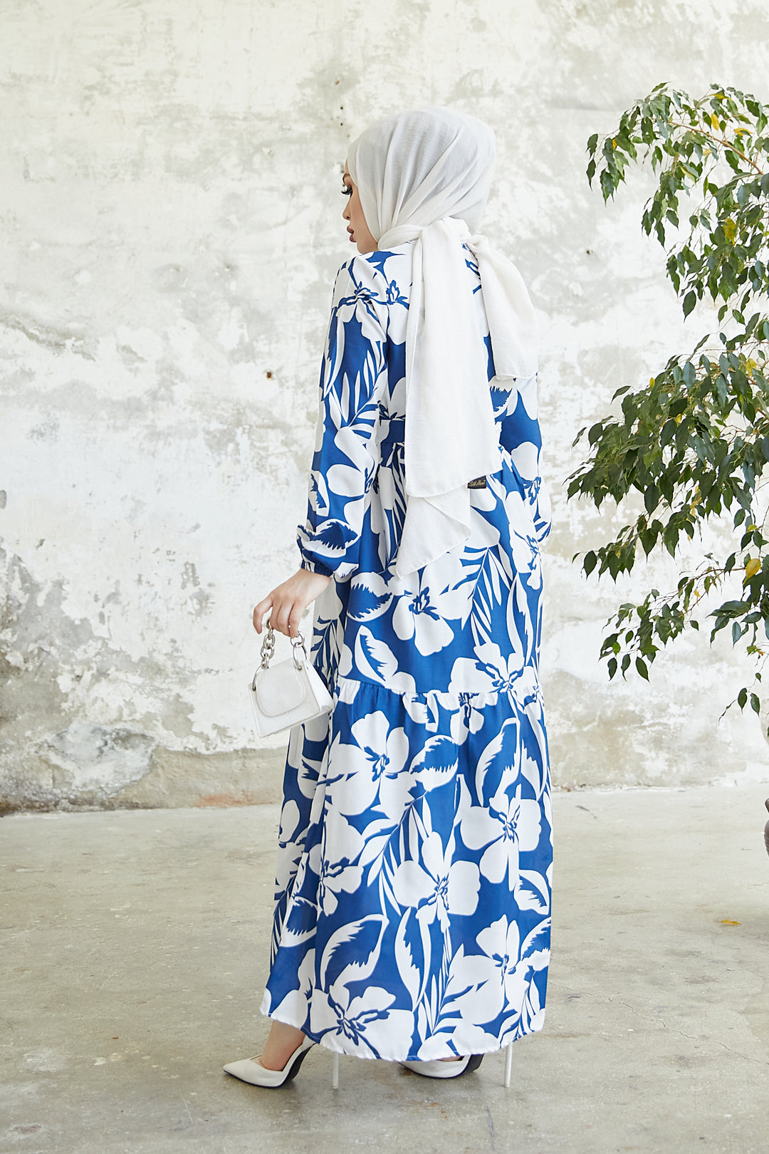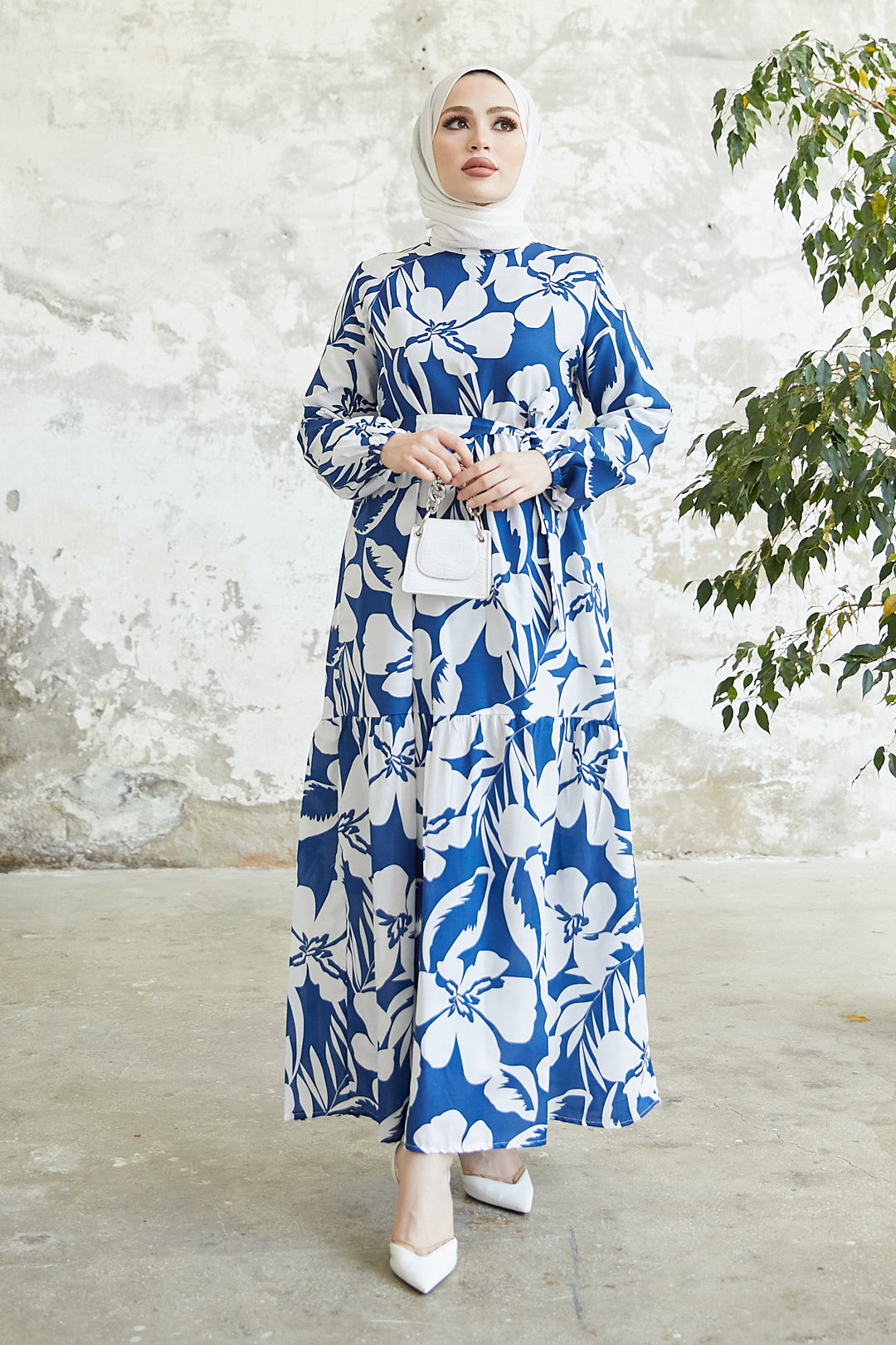 BNG Women Floral Pattern Hijab Dress Indigo - Clermont