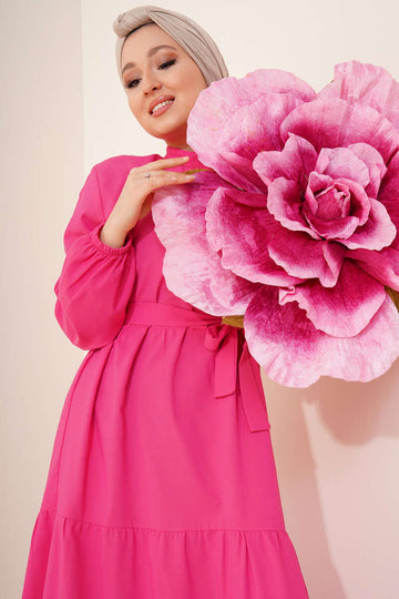 BNG Women Judge Collar Buttoned Hijab Dress Fuchsia - Clermont