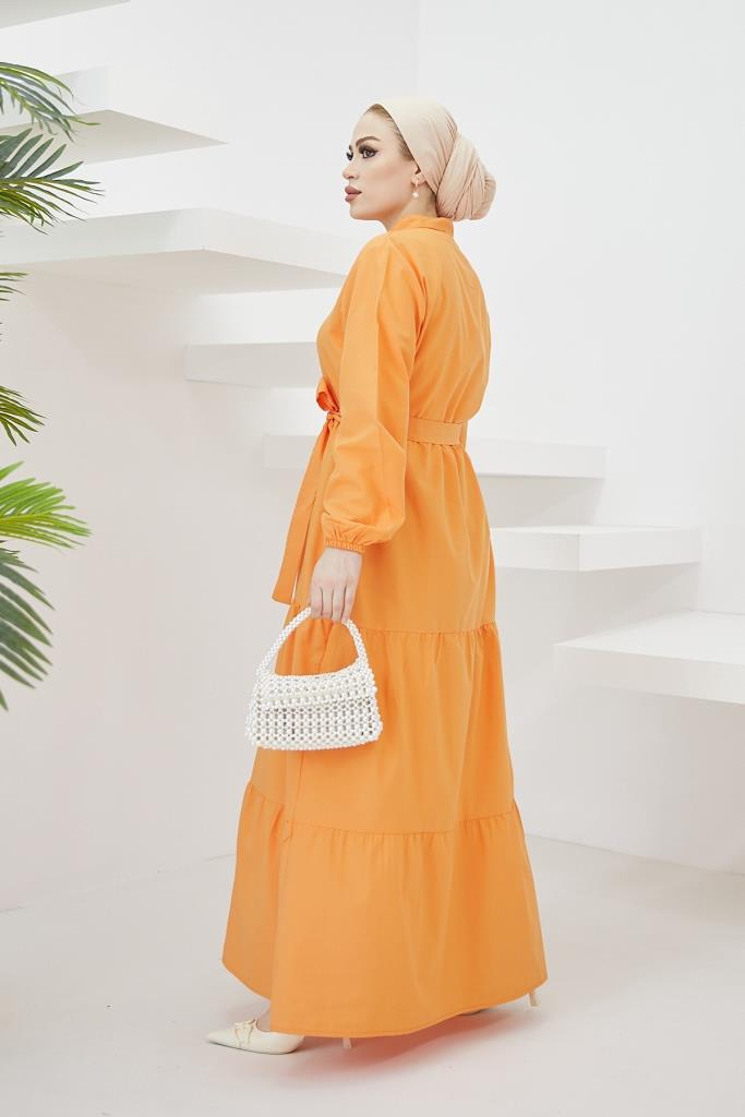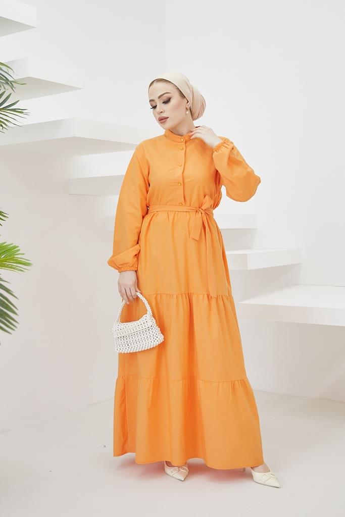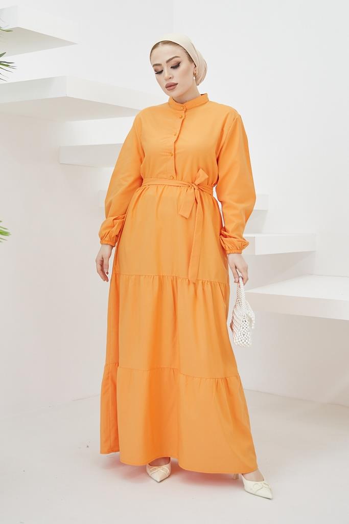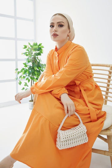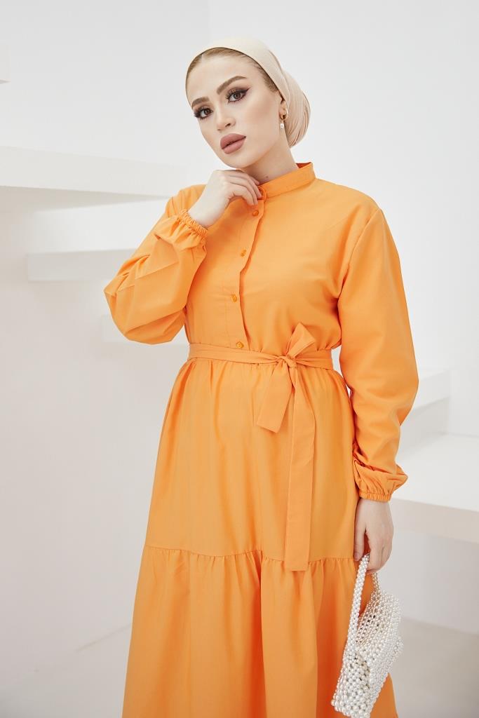 BNG Women Judge Collar Buttoned Hijab Dress Orange - Clermont