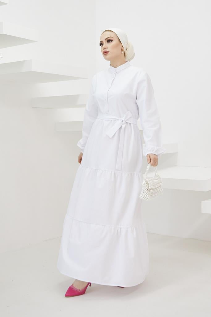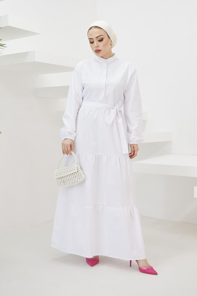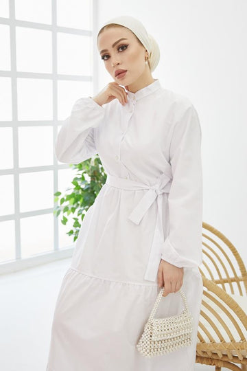 BNG Women Judge Collar Buttoned Hijab Dress White - Clermont