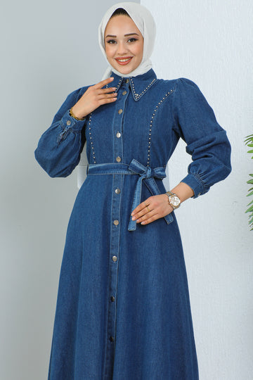 BNG Women Navy Blue Hijab Denim Dress - Clermont