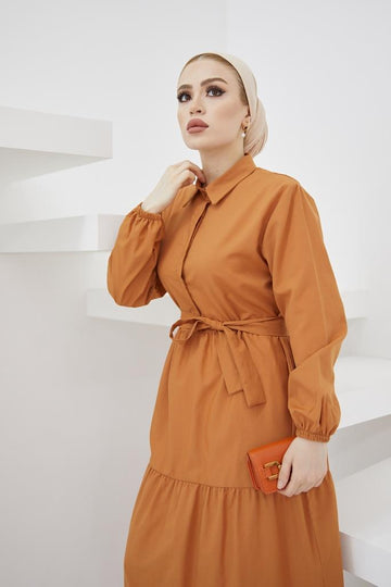 BNG Women Shirt Collar Buttoned Hijab Dress Cinnamon - Clermont