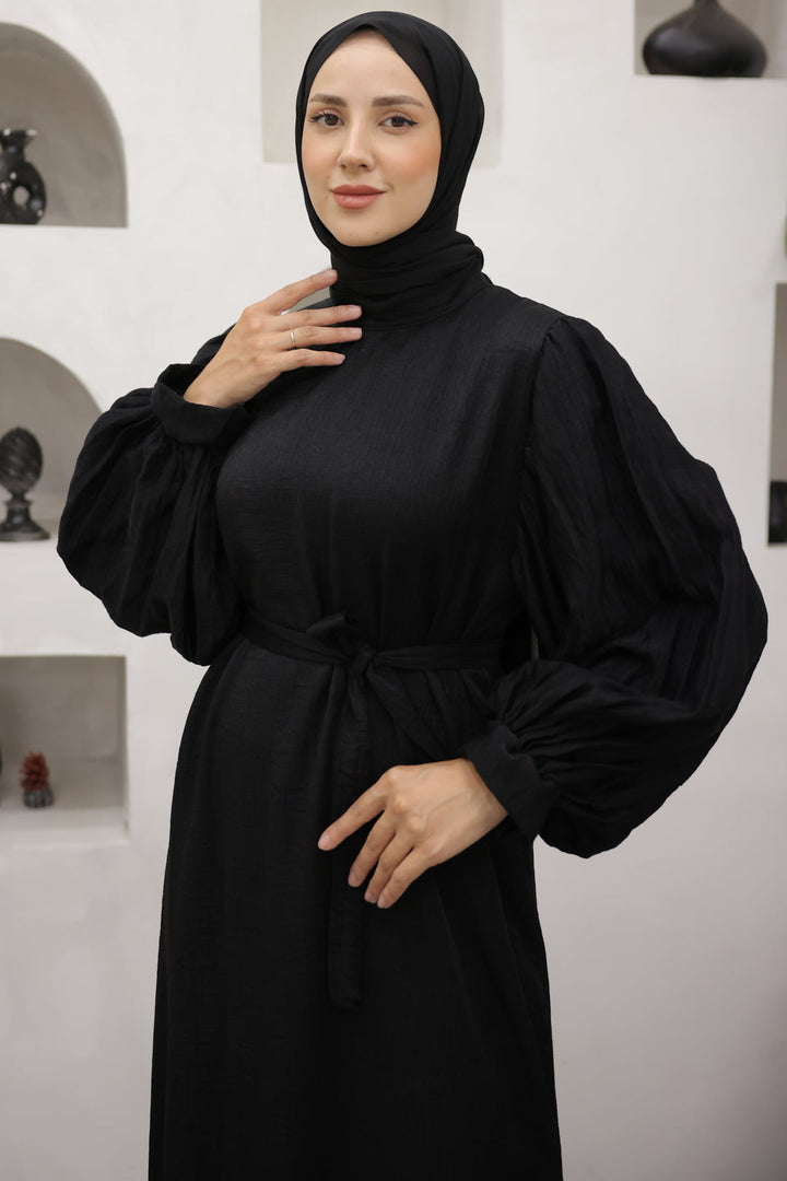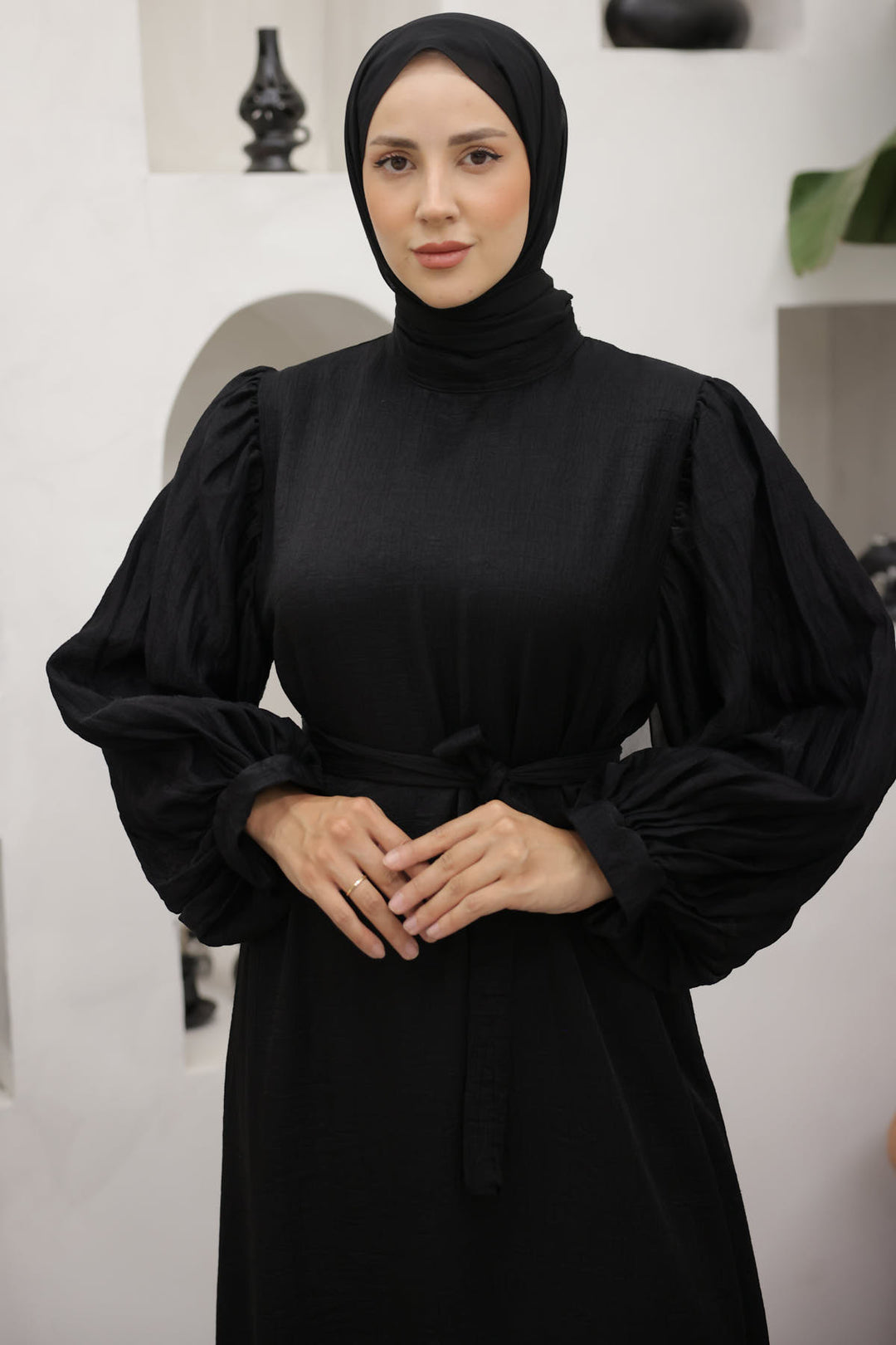BNG Women Sleeves Pile Detailed Hijab Dress Black - Clermont