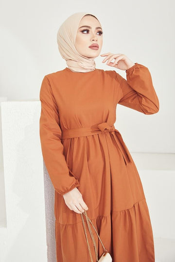 BNG Women Zero Collar Belted Hijab Dress Cinnamon - Clermont