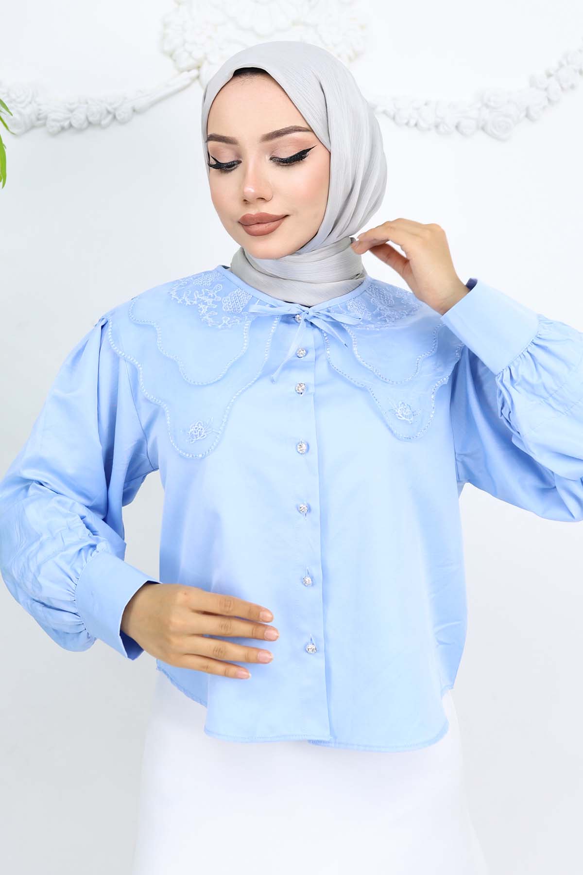 BNG Women Baby Blue Short Sleeve Shirt with Baby Collar 2254 - Levallois-Perret