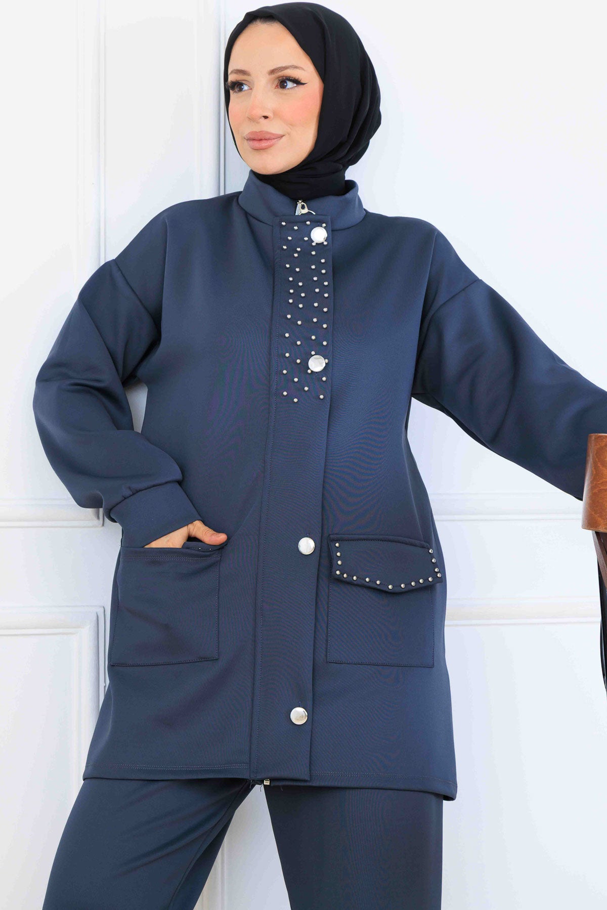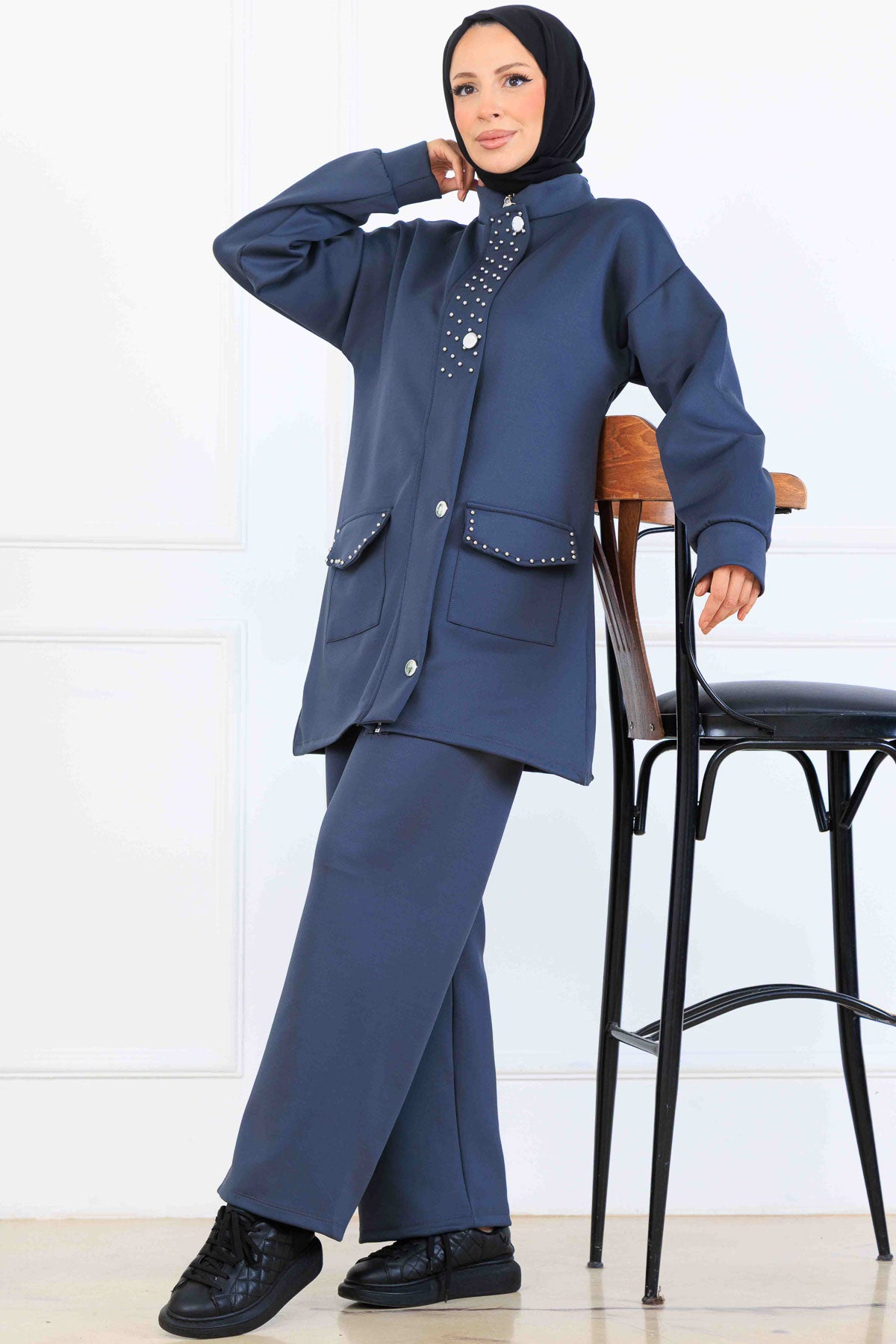 BNG Women Bead-Detailed Scuba Two-Piece Set N5334 Anthracite - Figueira da Foz