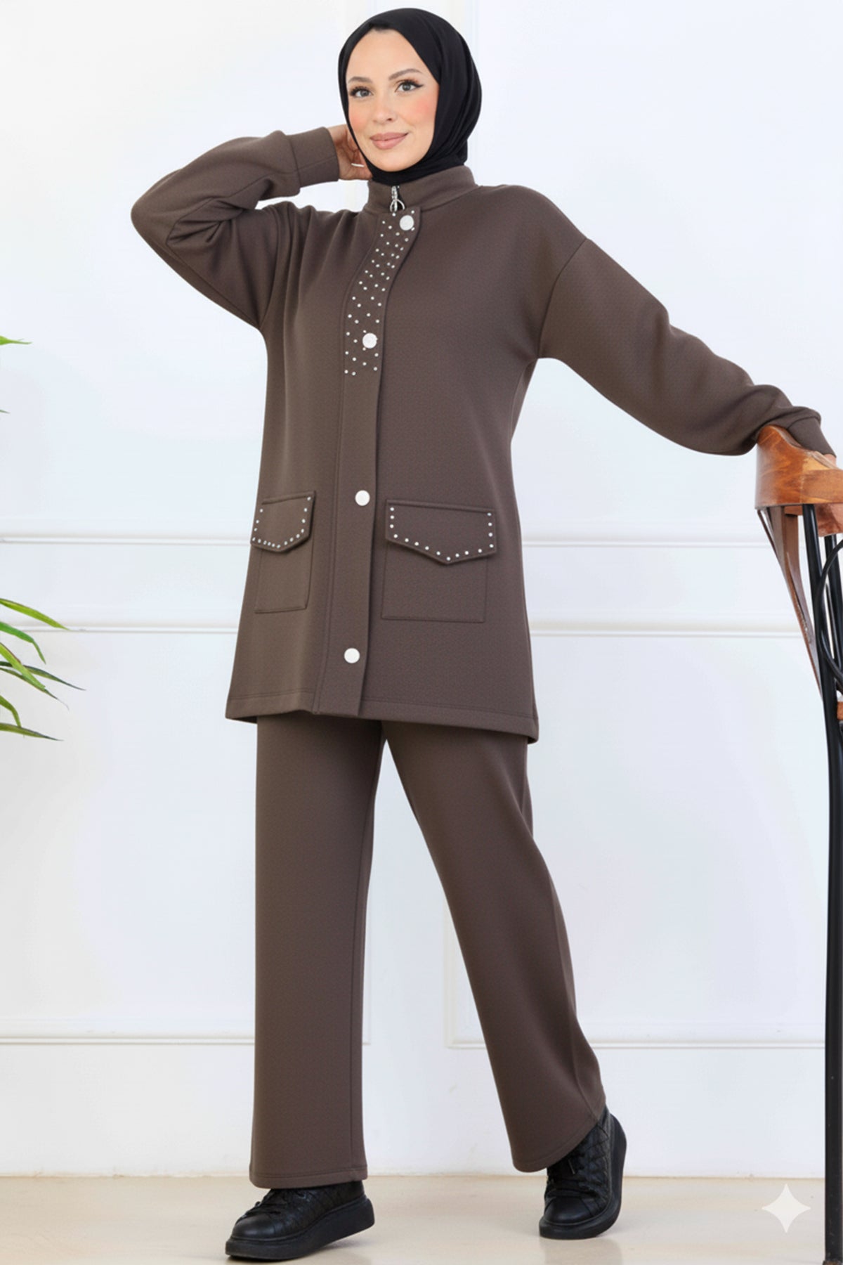 BNG Women Bead-Detailed Scuba Two-Piece Set N5334 Brown - Reading