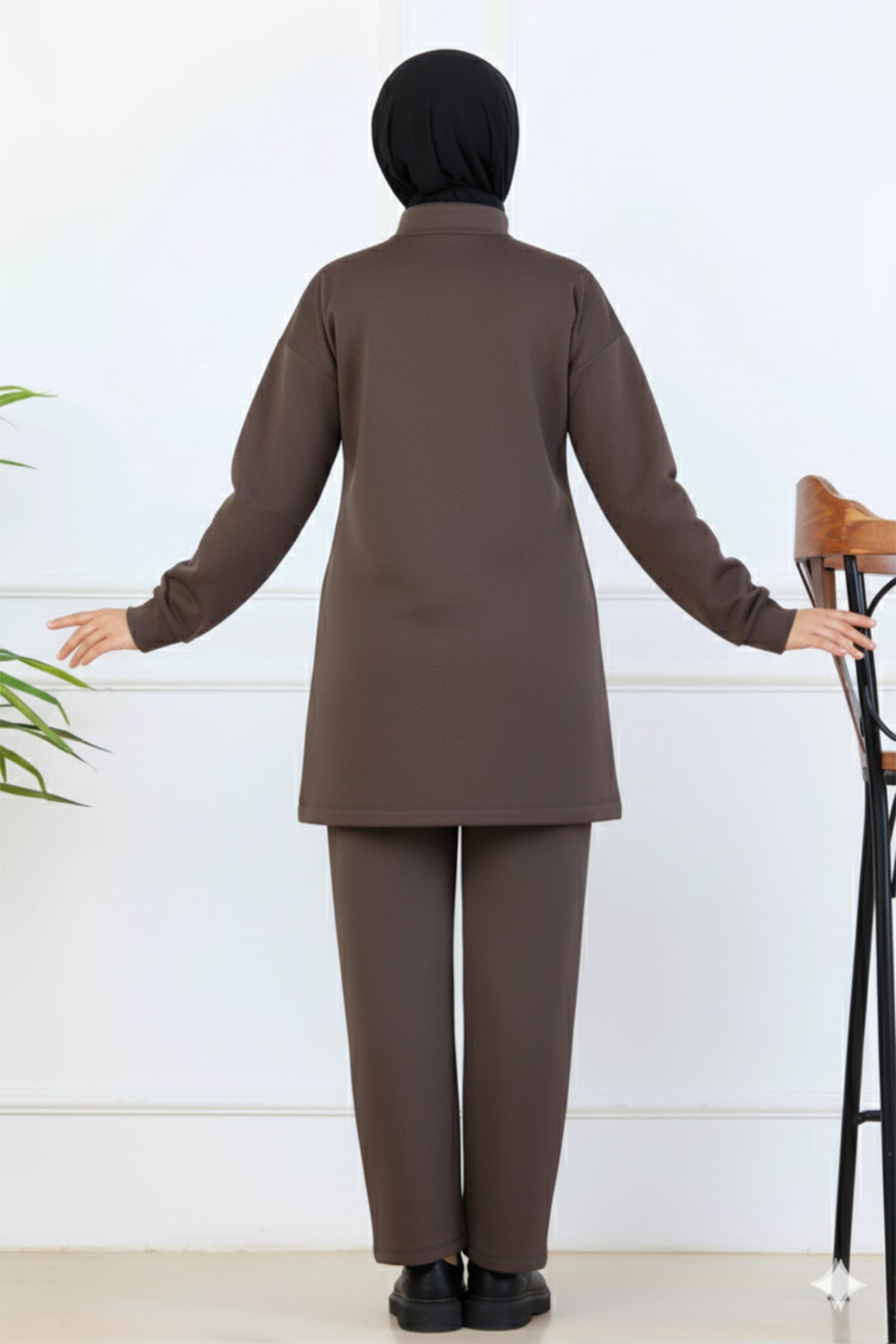 Product Information: Top Length: 79 cm, Pants Length: 100 cm. Fabric Type: %50 Viscose %45 Polyester %5 Lycra. Model Measurements: Height: 162 cm, Bust: 86 cm, Waist: 69 cm, Hips: 89 cm. The product on the model is size 38/M. There may be a slight color difference due to concept shots in the product color.