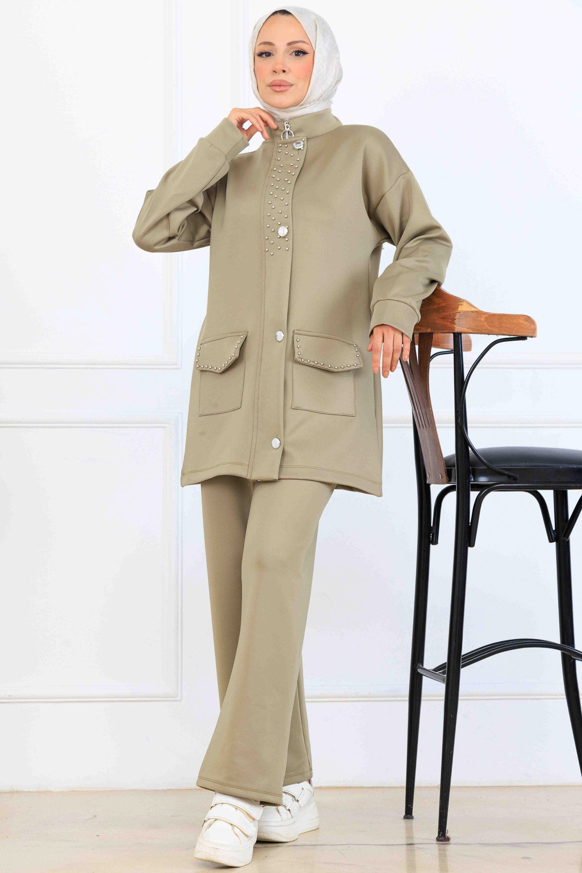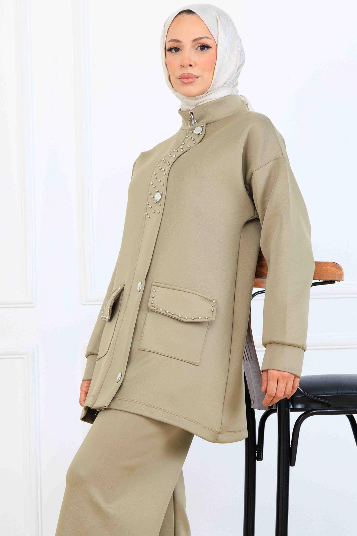 BNG Women Bead Detailed Scuba Two Piece Set N5334 Sage Green - Mitcham