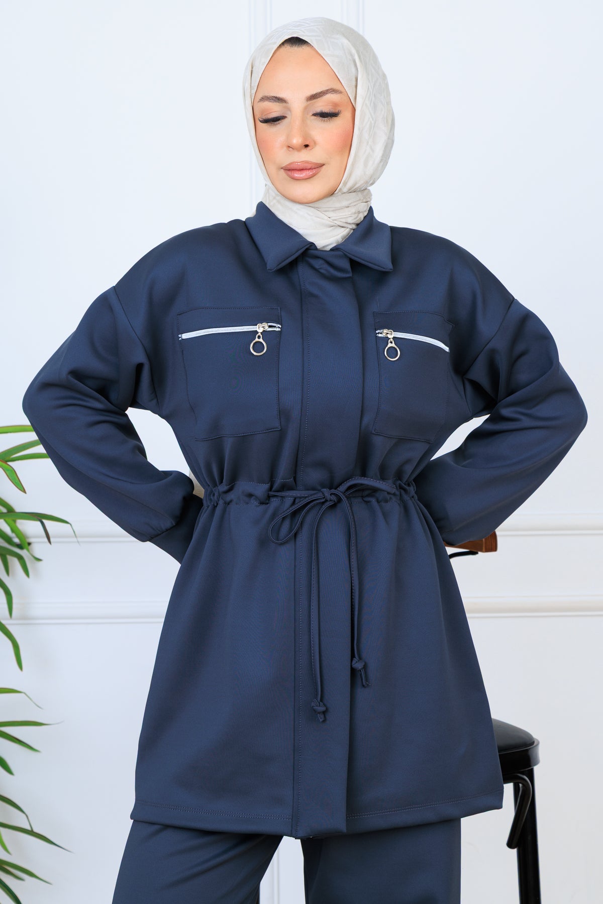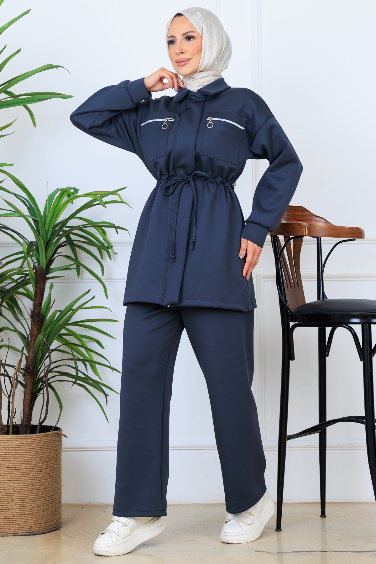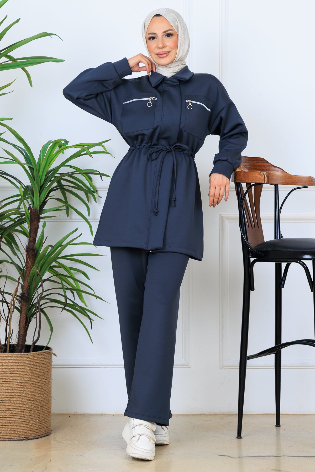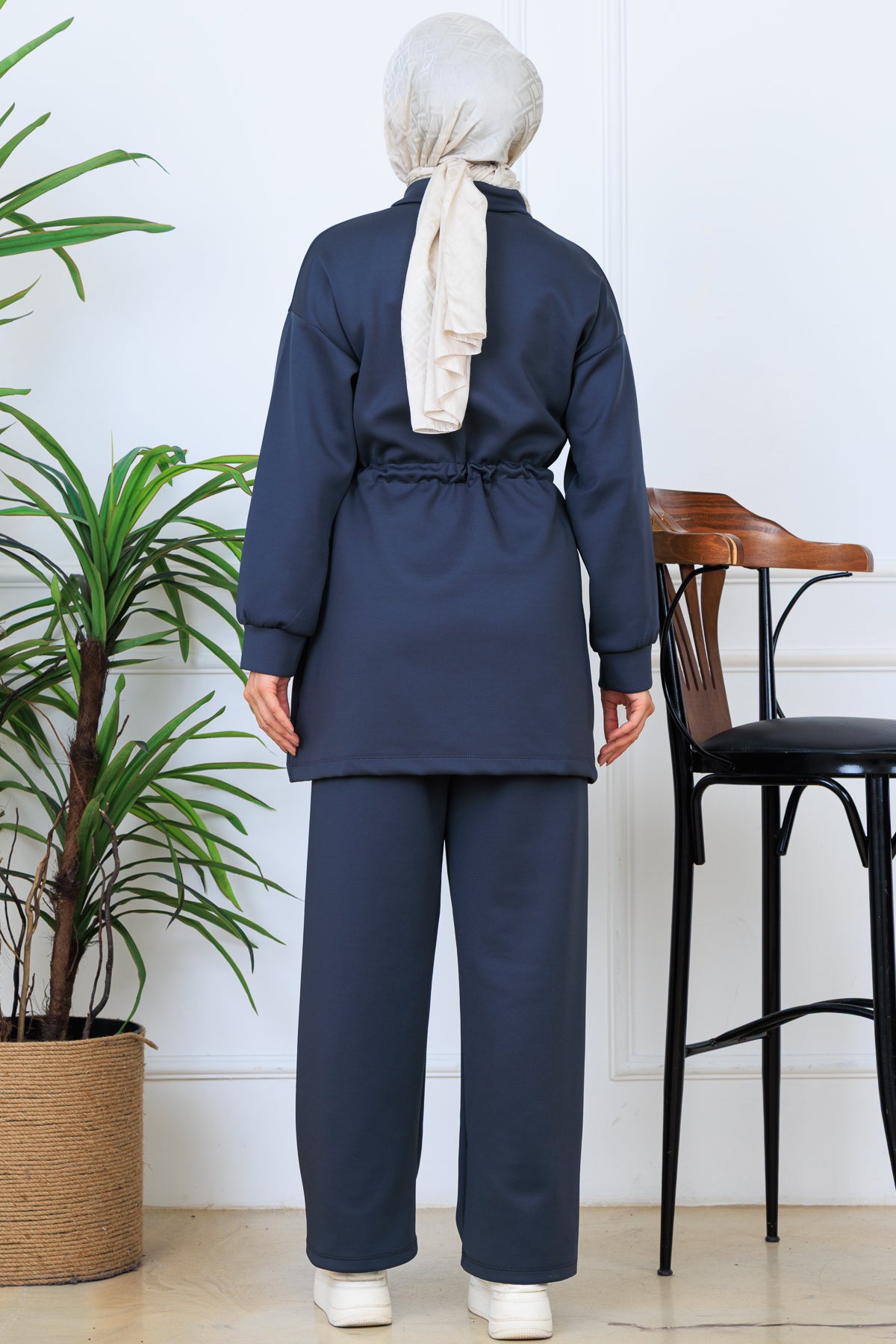 BNG Women Beli Büzgülü Fermuarlı Scuba Takım N5329 Antrasit - Pennsauken