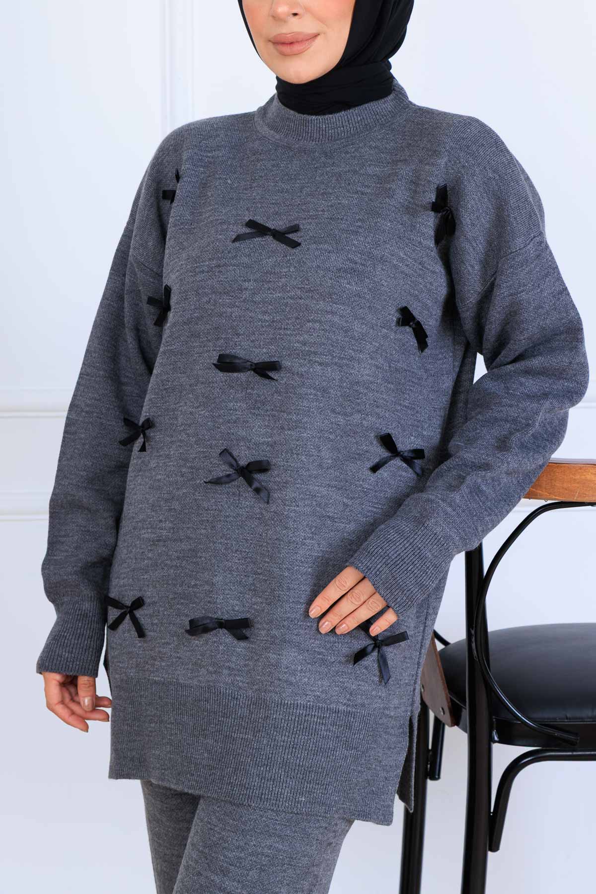 BNG Women Bow Detail Knit Set S1106 Anthracite - Fountain Valley