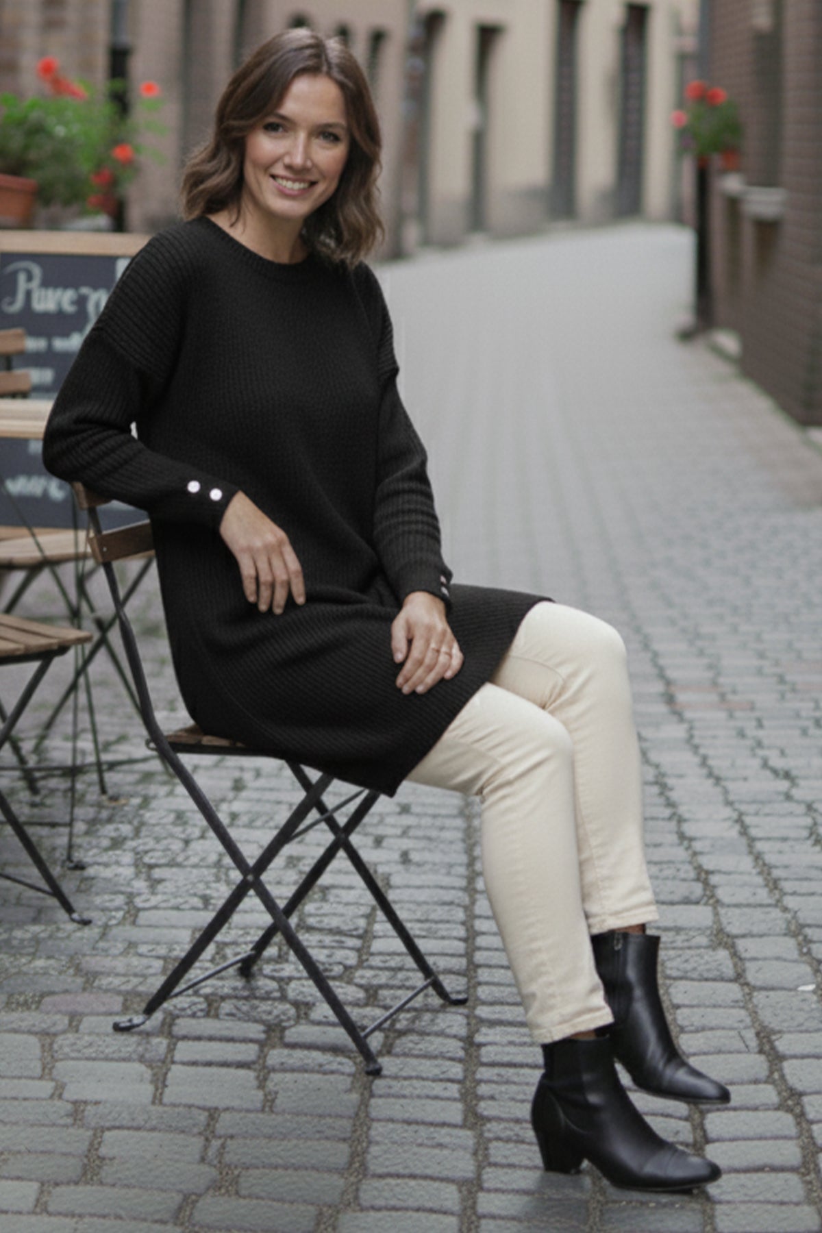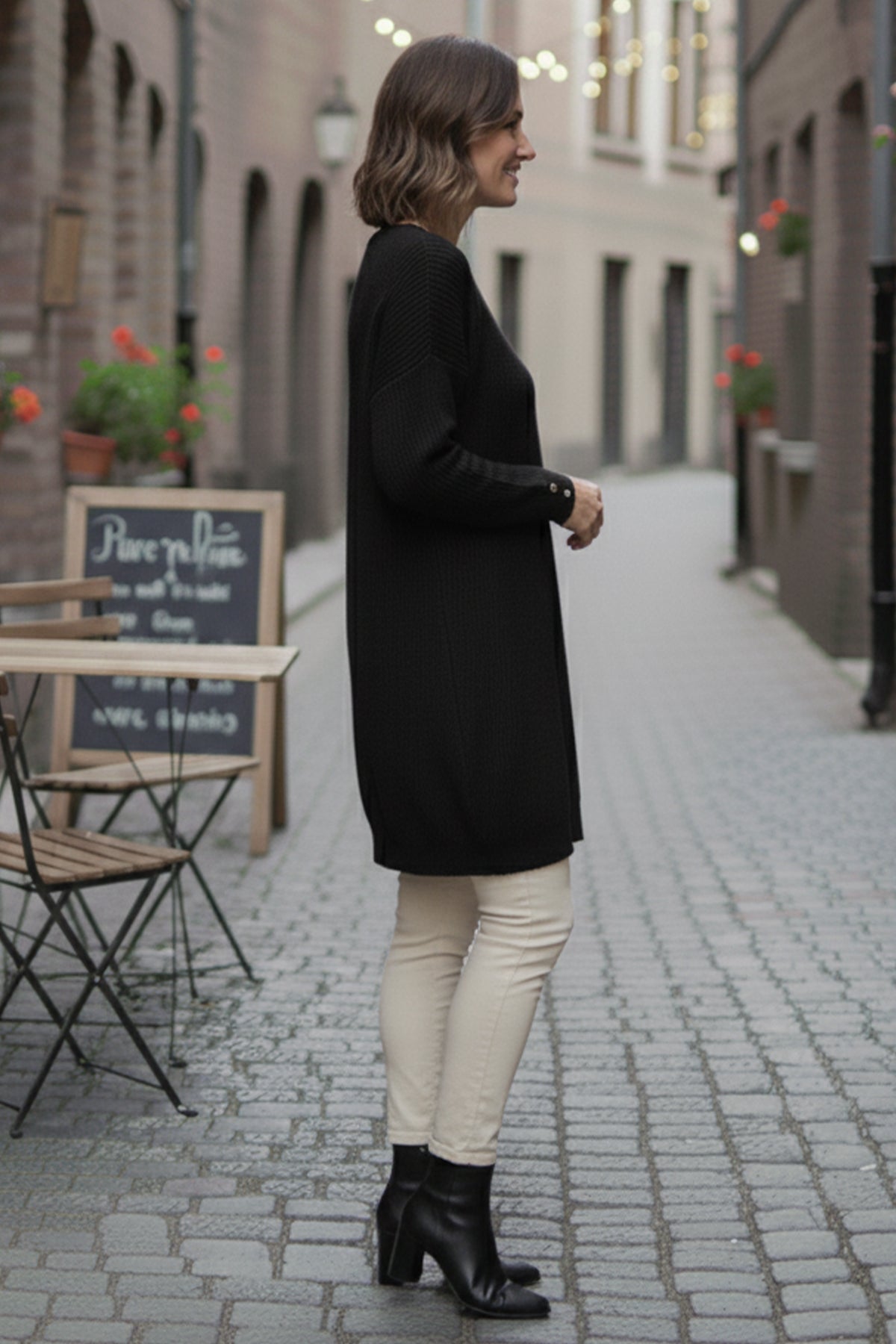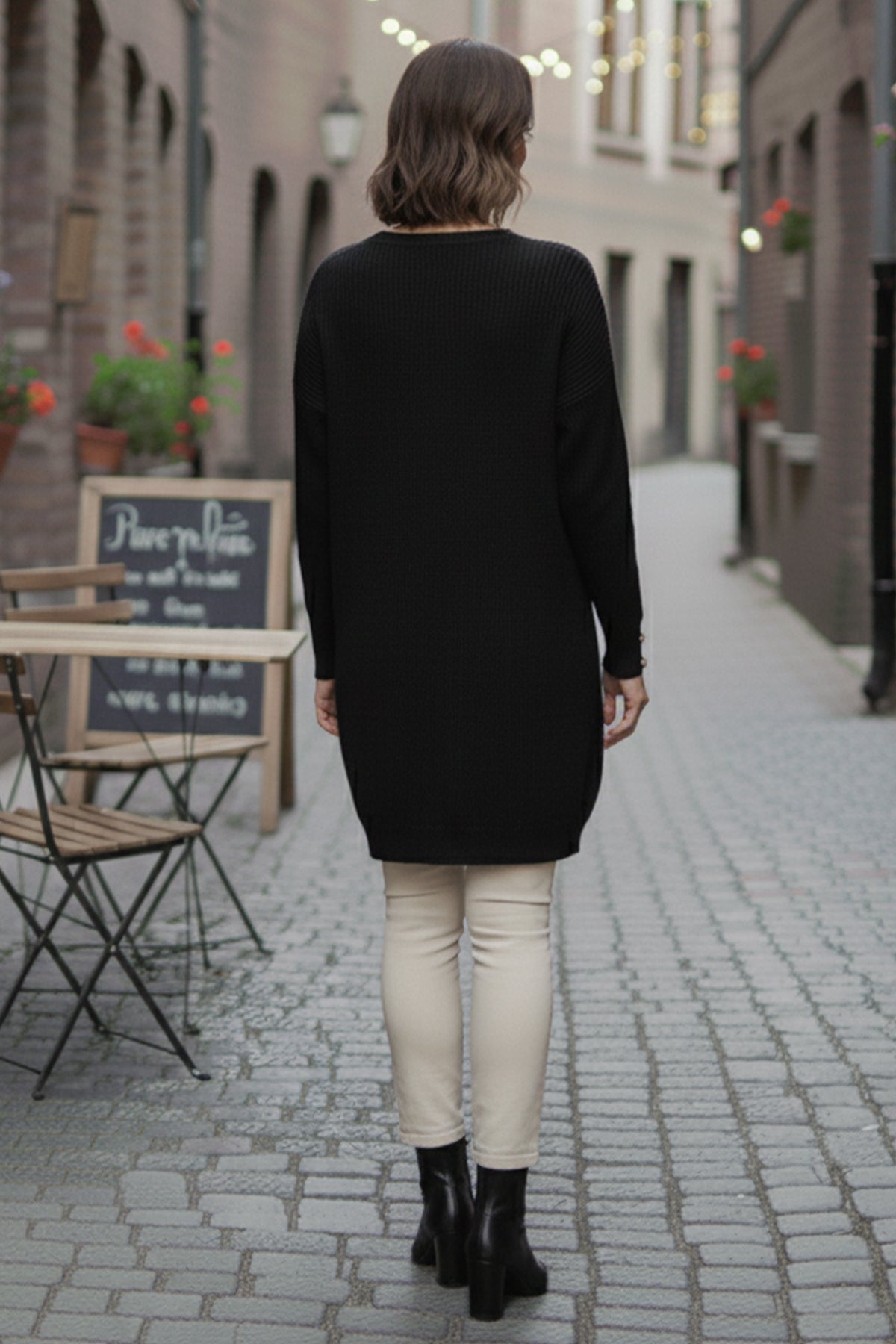 BNG Women Buttoned Sleeve Sweater R4474 Black - Torrente