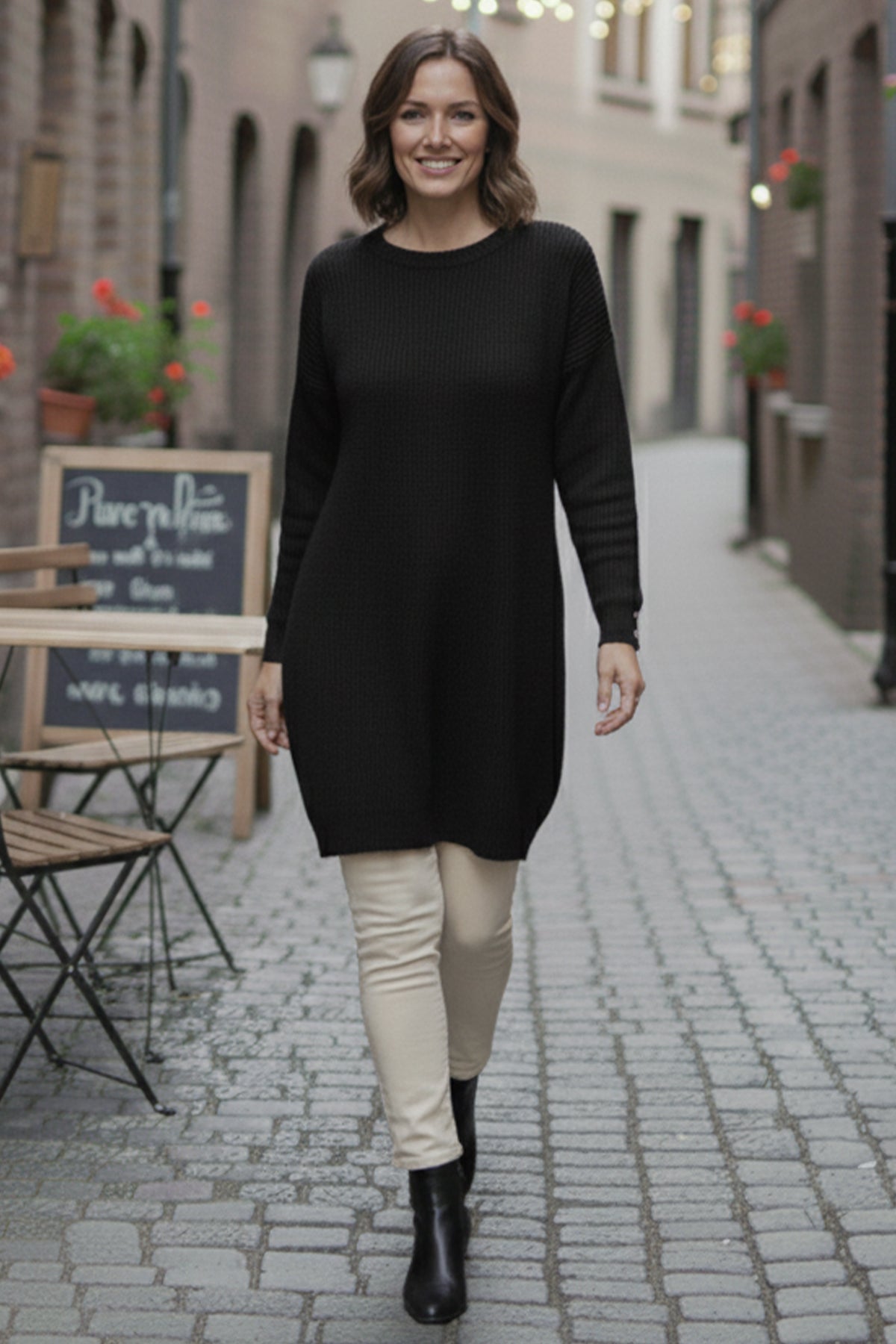 Product Feature: The product is in normal size, you can take your own size. Product Information: Tunic Length: 75 cm, Bust: 120 cm. Fabric type: 70% Acrylic, 30% Wool. Model Measurements: Height: 165 cm, Bust: 83 cm, Waist: 68 cm, Hips: 90 cm. The product on the model is in Standard Size. It is compatible between sizes 36-44. There may be a color difference due to concept shootings in the product color.