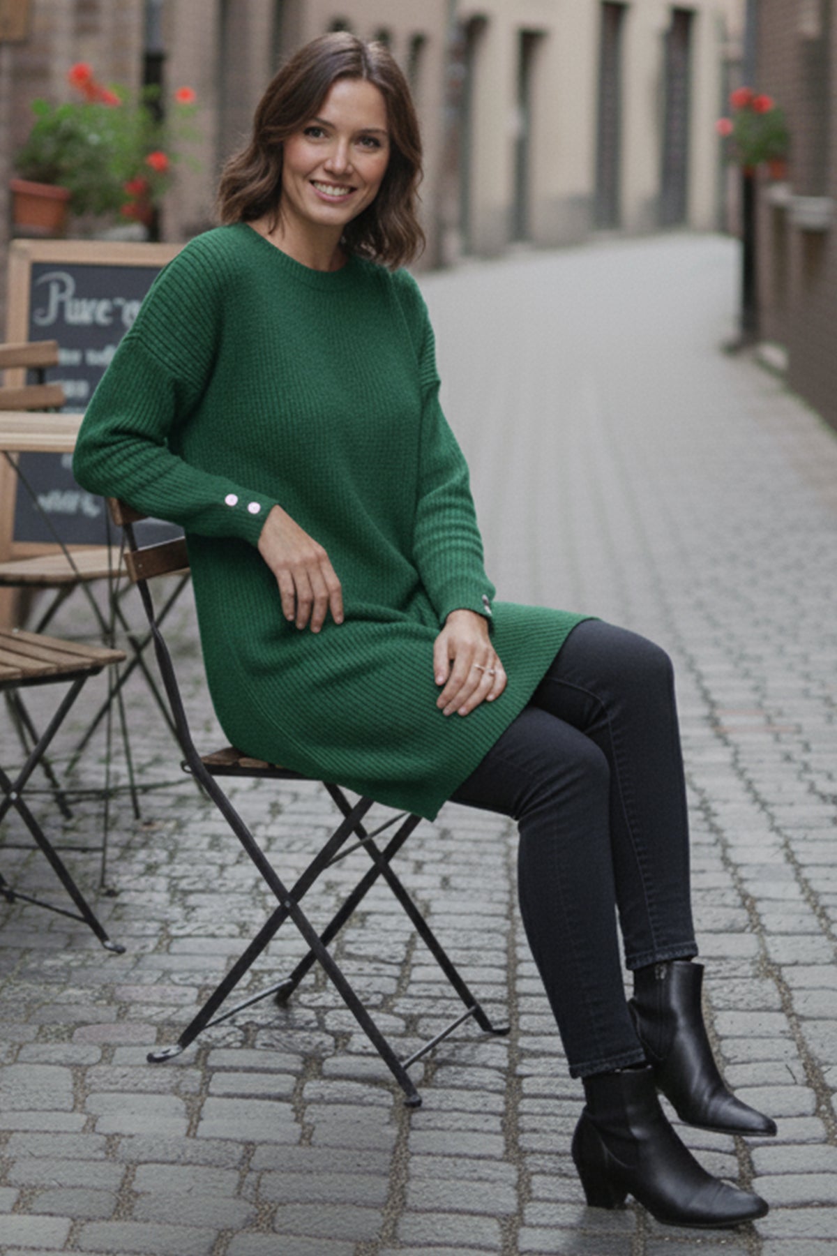 Buttoned Sleeve Sweater R4474 Emerald Green