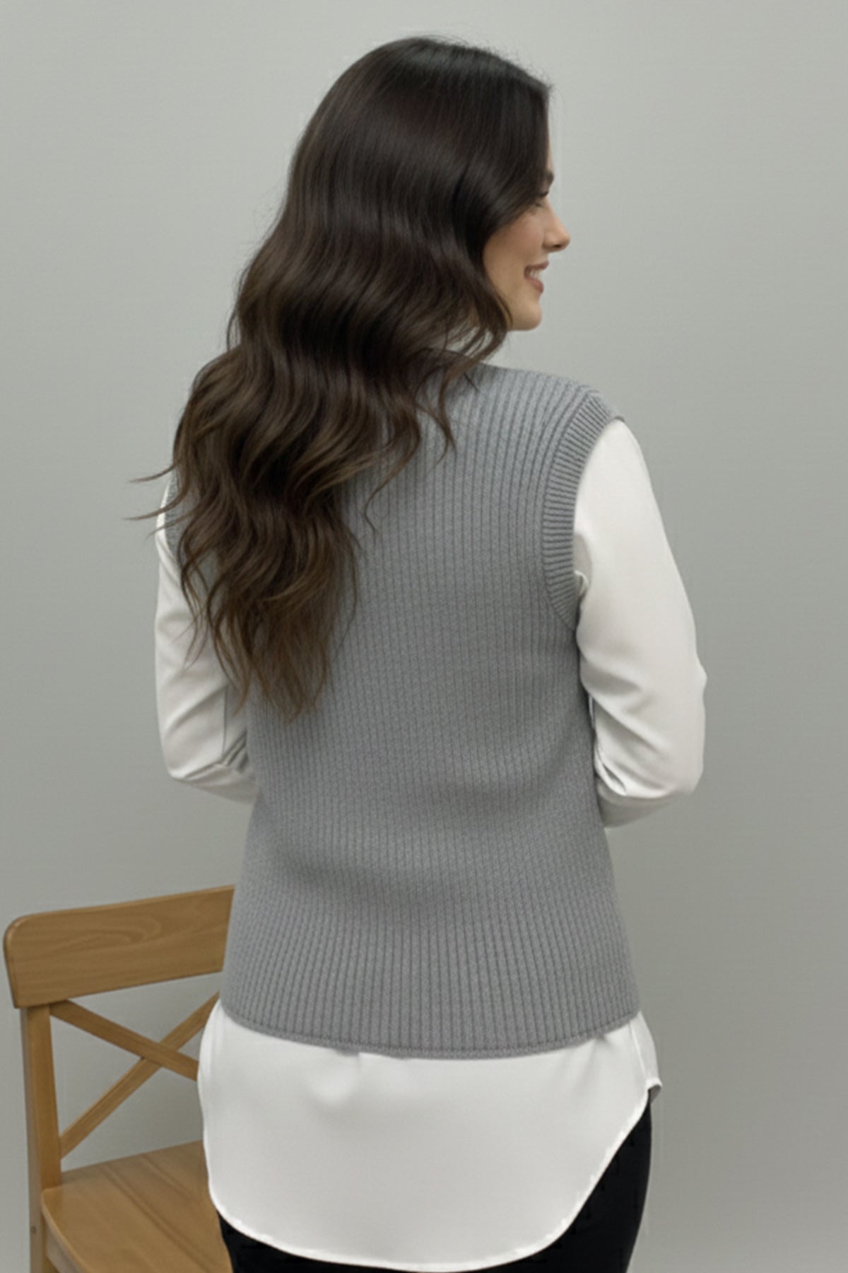 BNG Women Cepli Triko Yelek N495 Gri - Margate