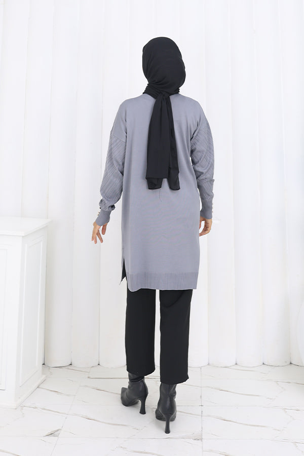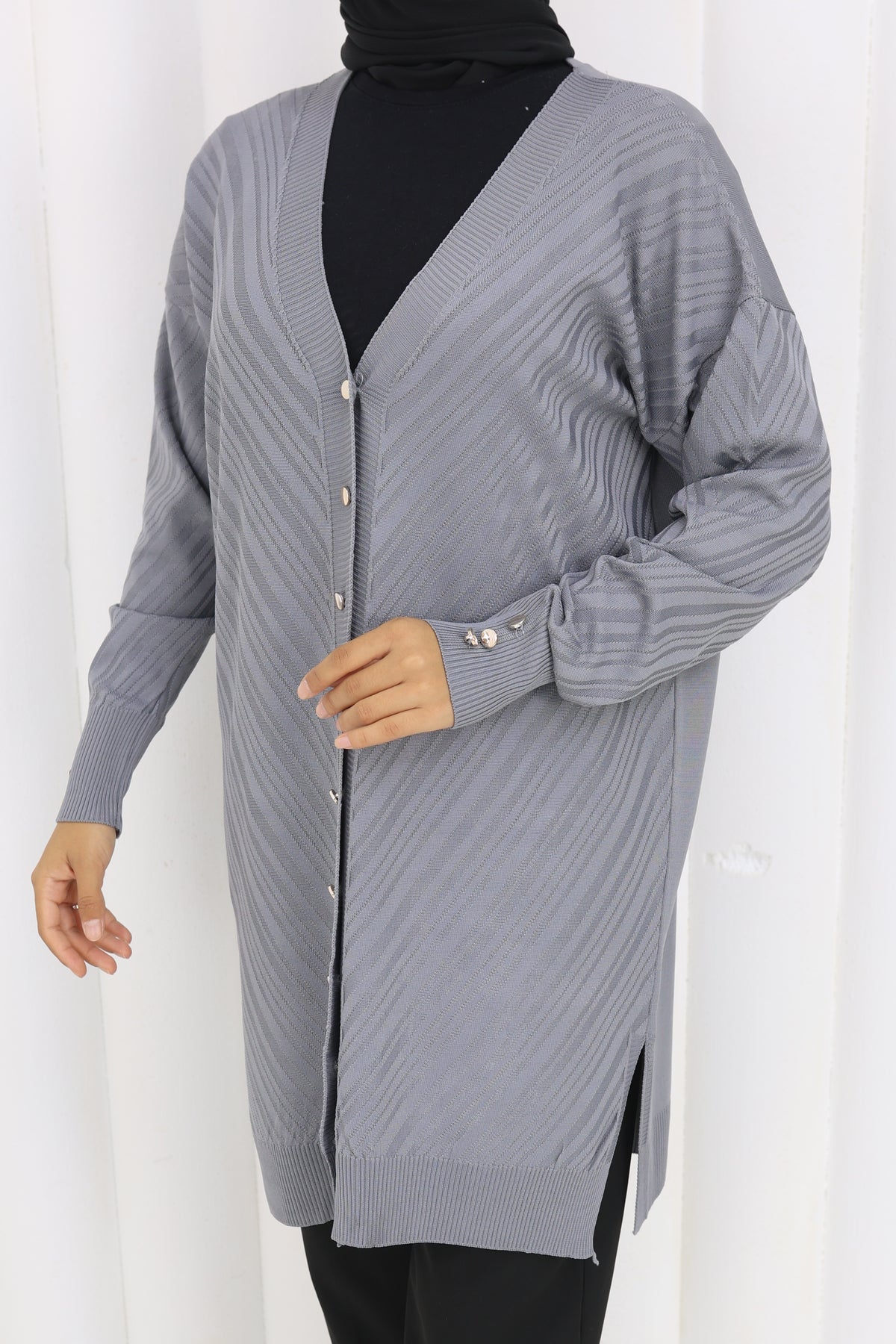 BNG Women Desenli Uzun Merserize Hırka N3198 Gri - The Hague