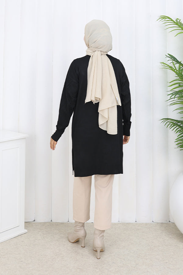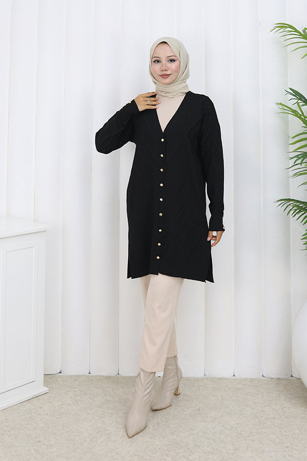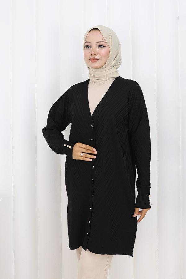 BNG Women Desenli Uzun Merserize Hırka N3198 Siyah - Svitlovodsk