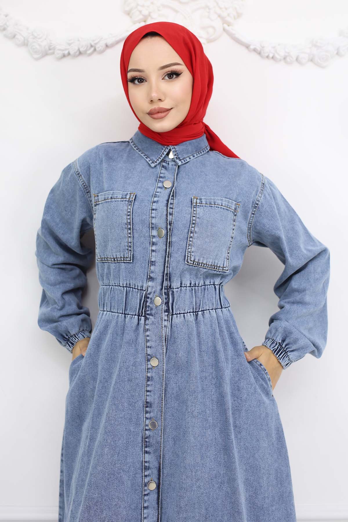 BNG Women Düğmeli Kot Elbise Mavi 6101 - Chelmsford