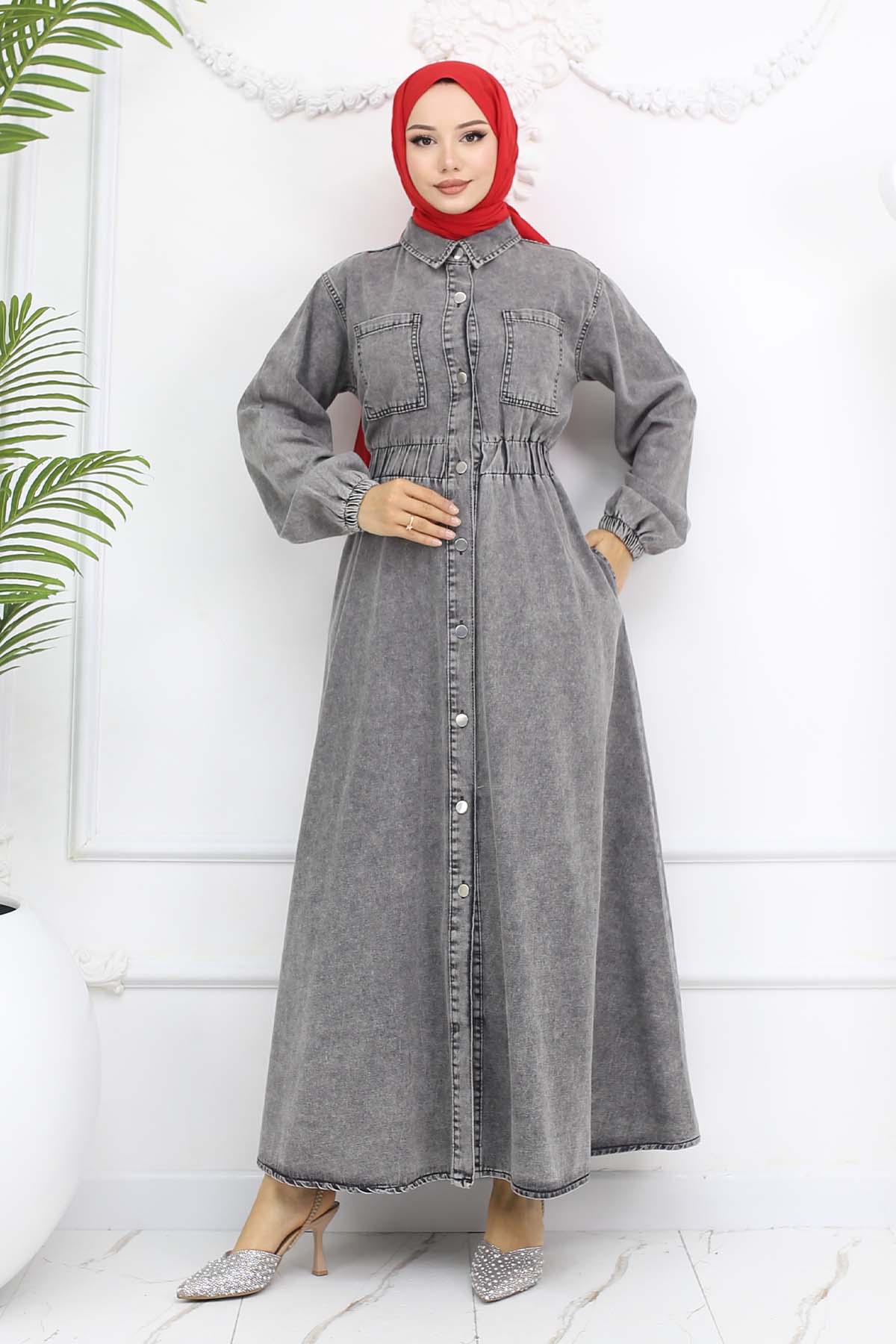 BNG Women Düğmeli Kot Elbise Siyah 6101 - Prattville