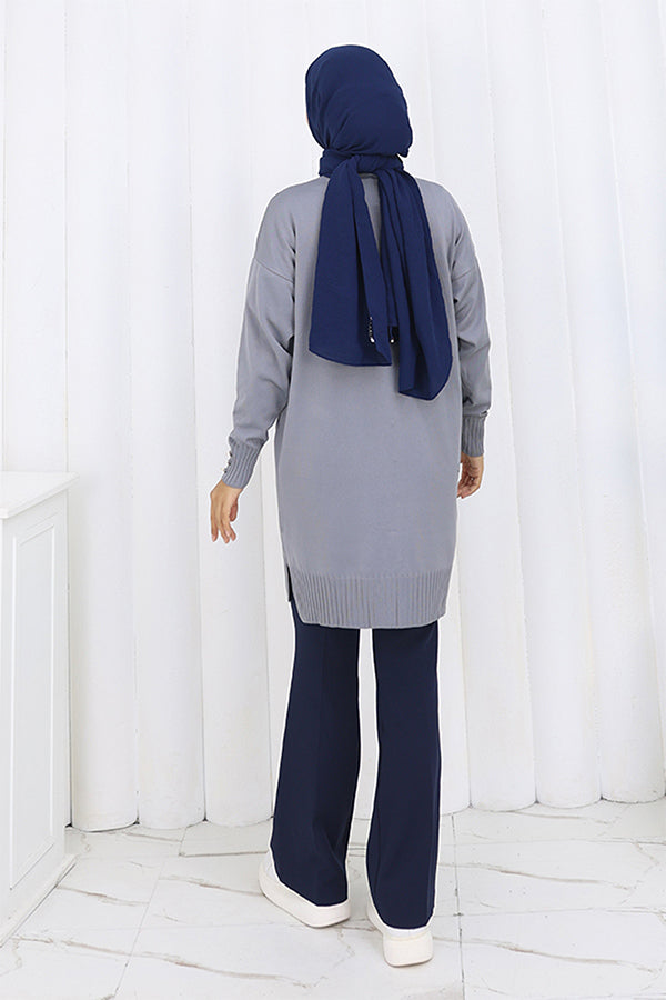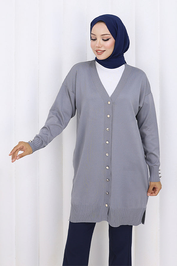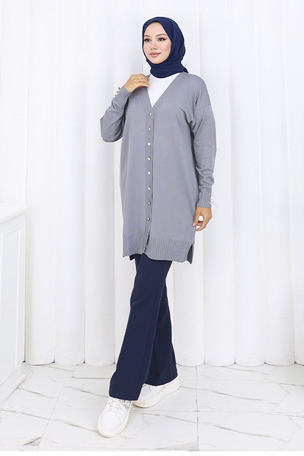 BNG Women Düğmeli Uzun Merserize Hırka N3176 Gri - East Brunswick