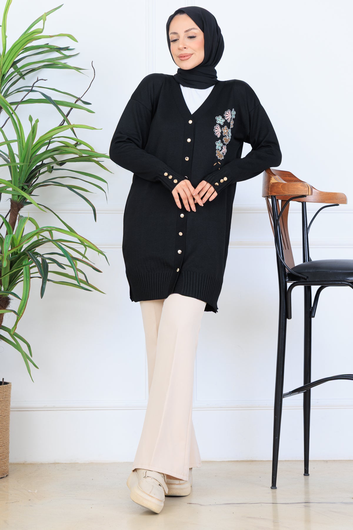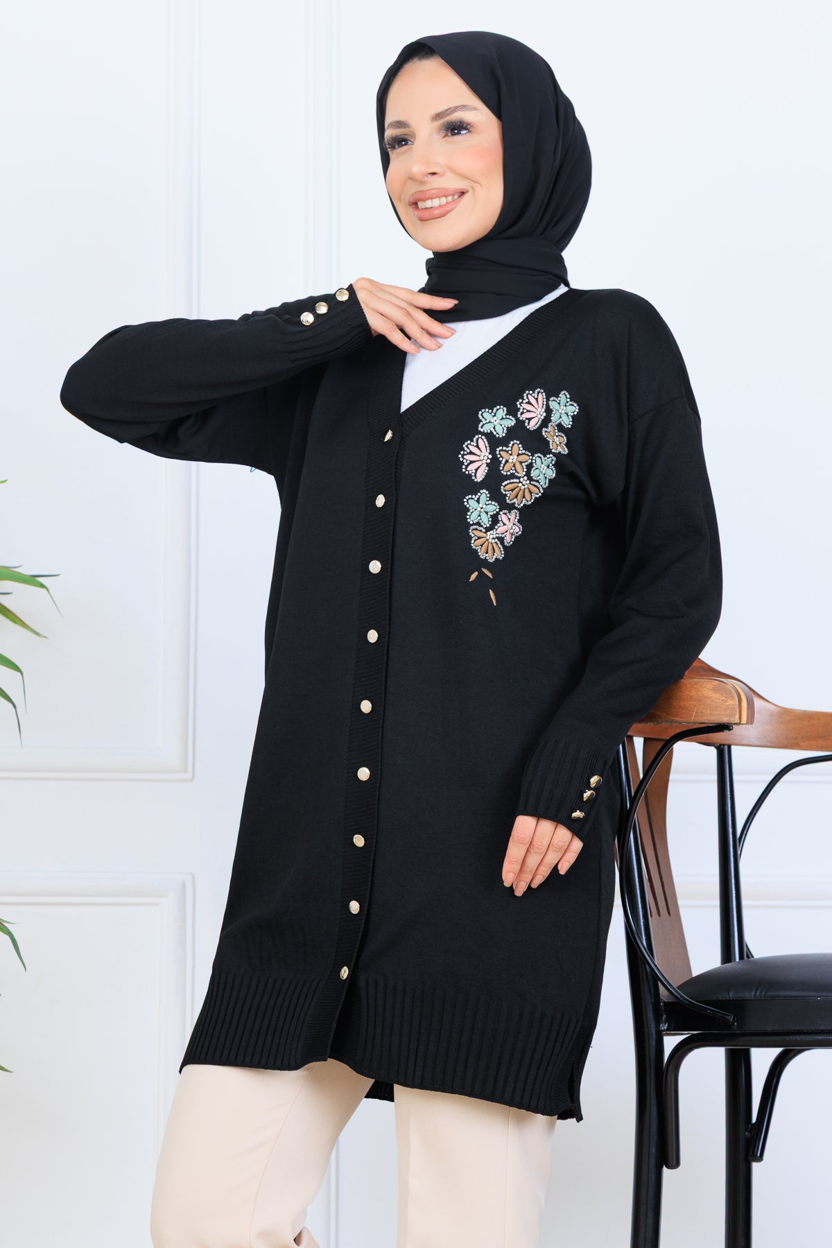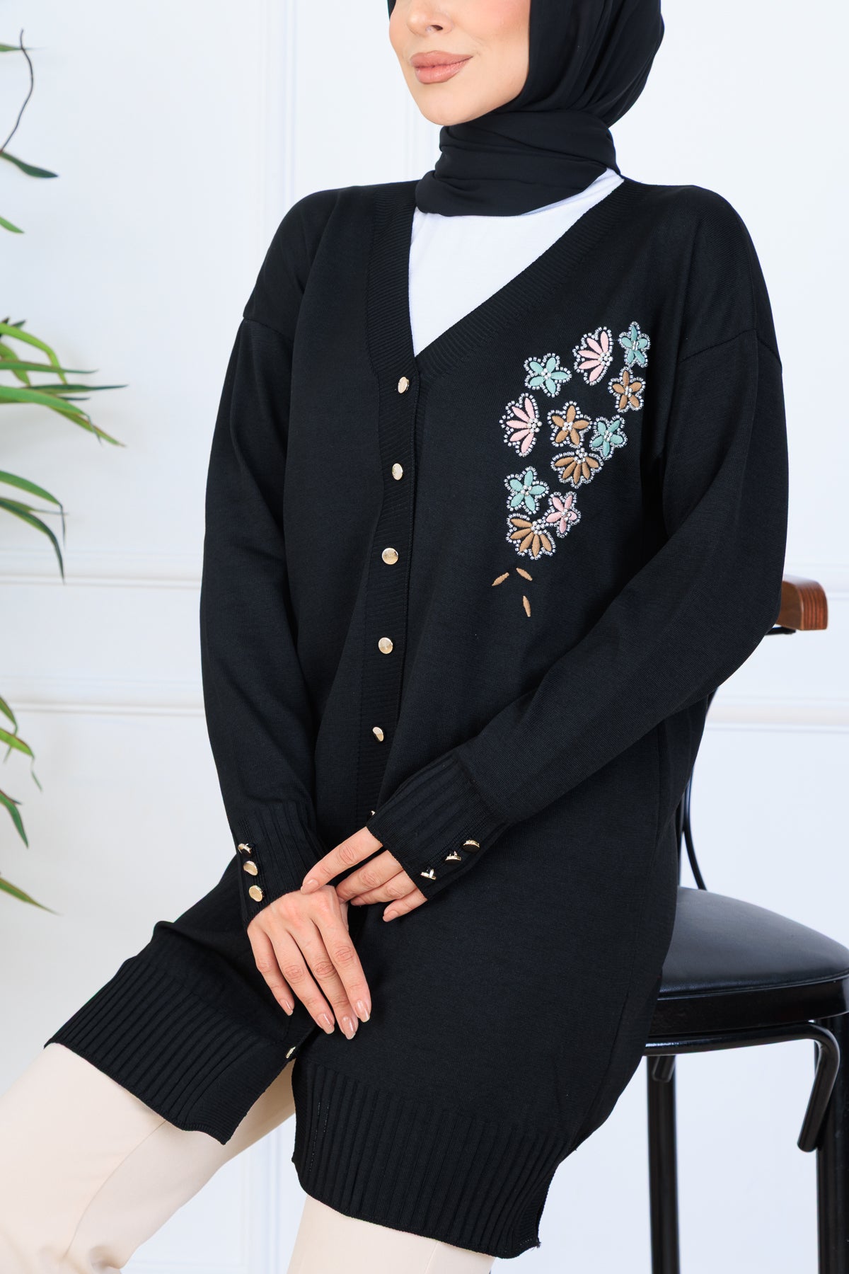 BNG Women Embroidered Beaded Mercerized Cardigan with Embroidery Detail N3280 Black - Lierre
