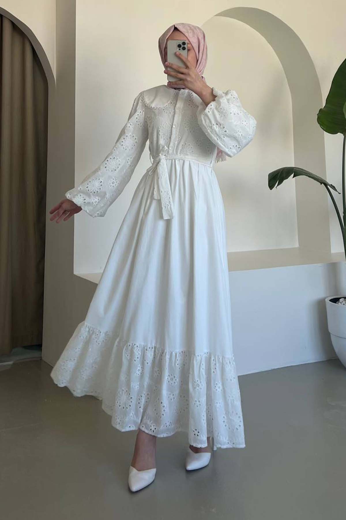 BNG Women Embroidered Detail Baby Collar Dress White 1003 - Lawrence