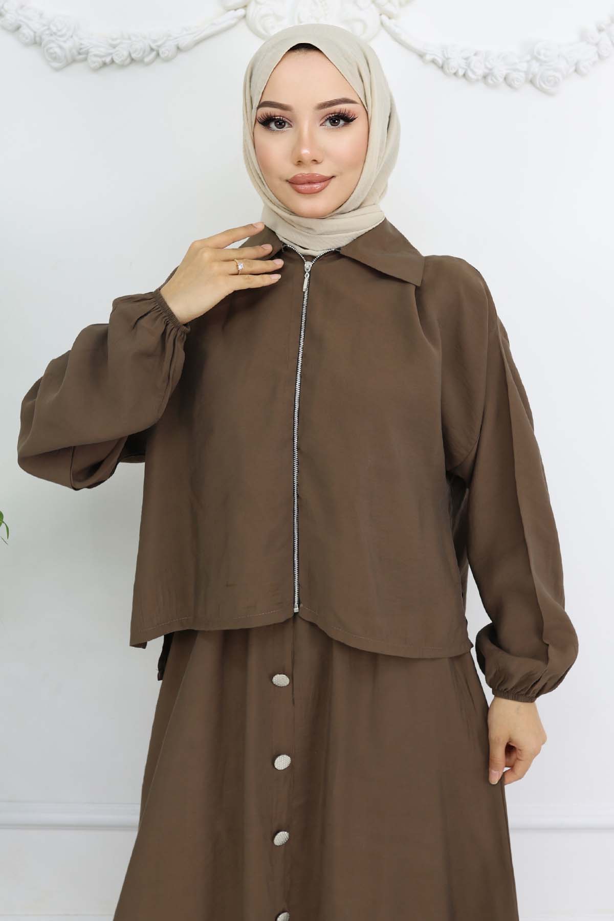BNG Women Fermuar Ceketli Elbise Takım Vizon 4807 - Viernheim