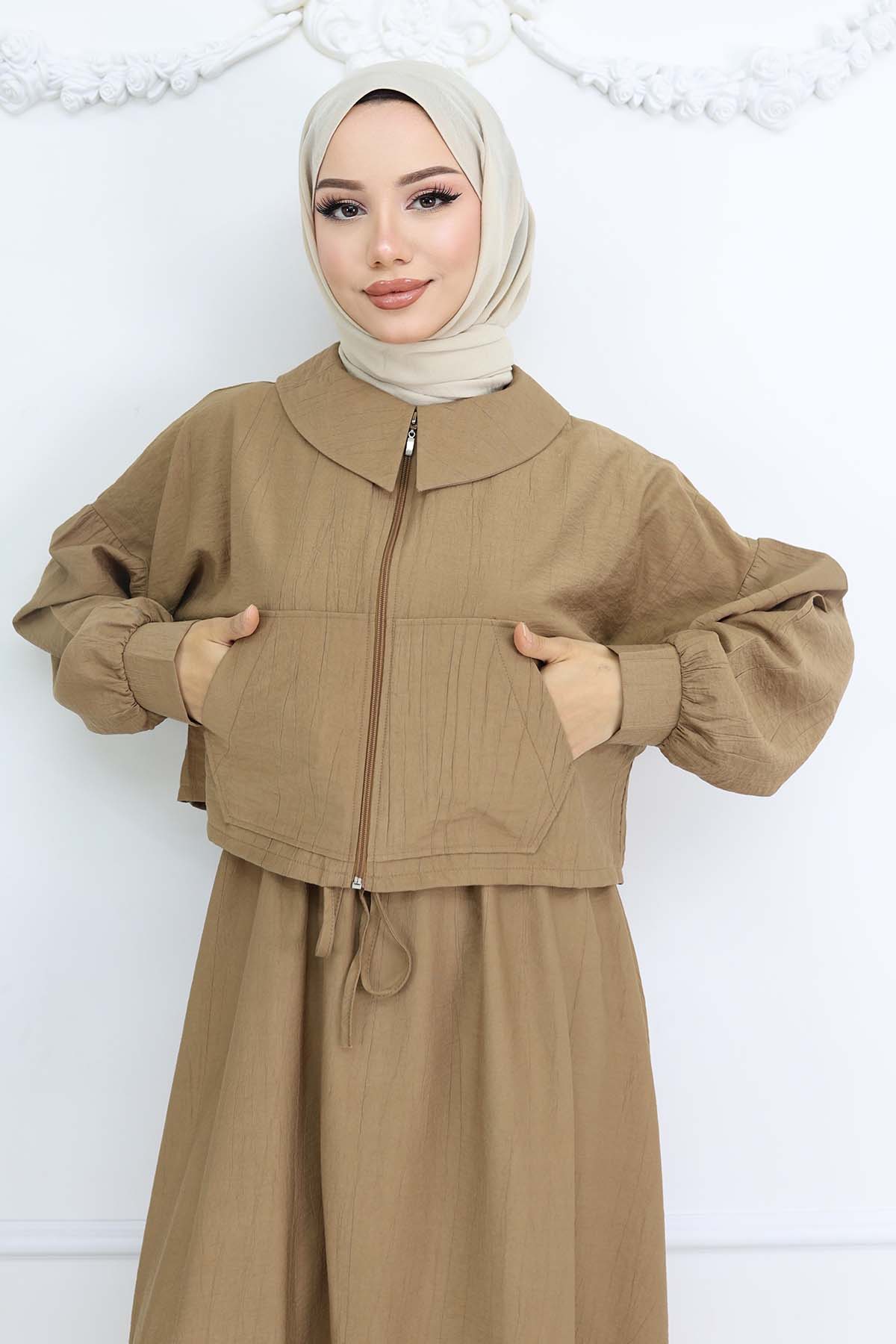 BNG Women Fermuarlı Ceket Jile Tesettür Takım Vizon 2240 - Aalen