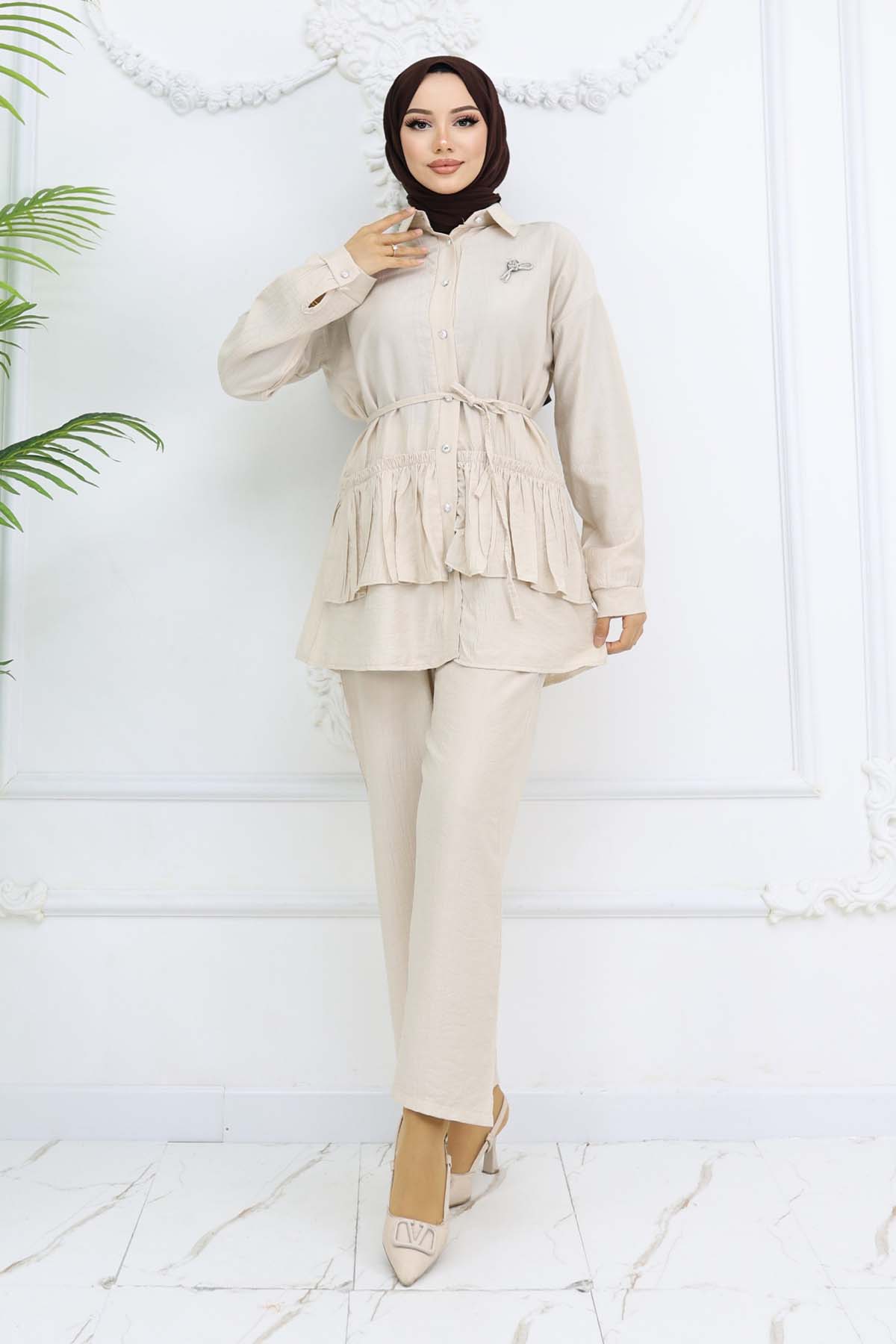 BNG Women Fırfırlı Broş Detaylı İkili Takım Taş Rengi 4793 - Garges-lès-Gonesse