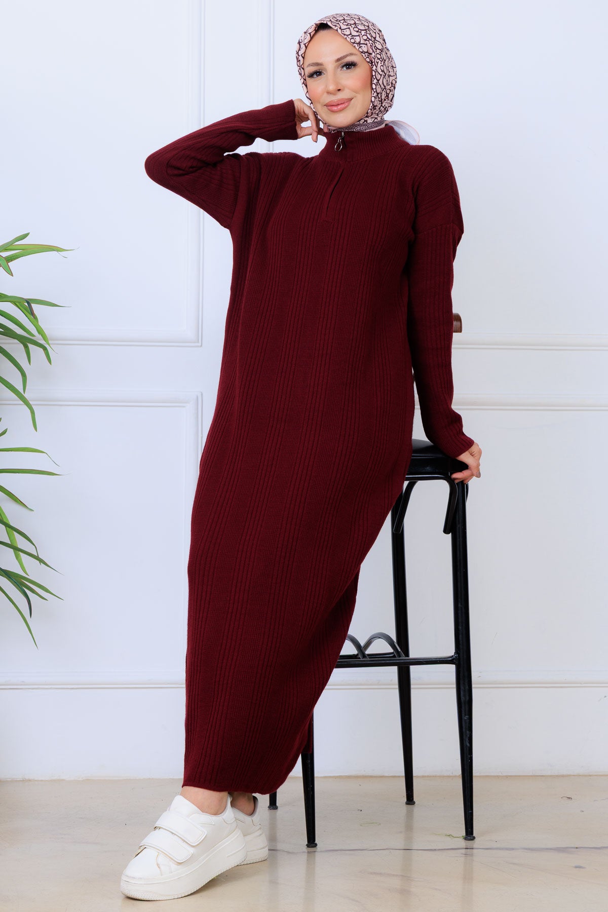 BNG Women Fitilli Triko Elbise K3005 Bordo - Ponce