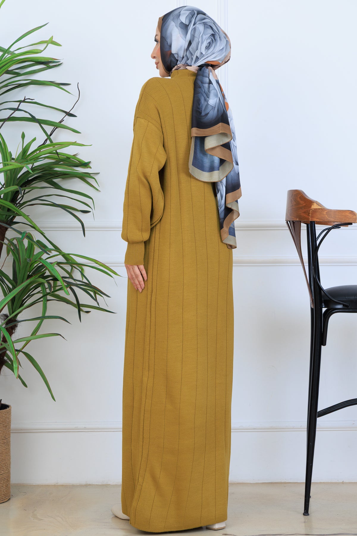 BNG Women Fitilli Triko Elbise N7085 Yağ Yeşili - Urmston