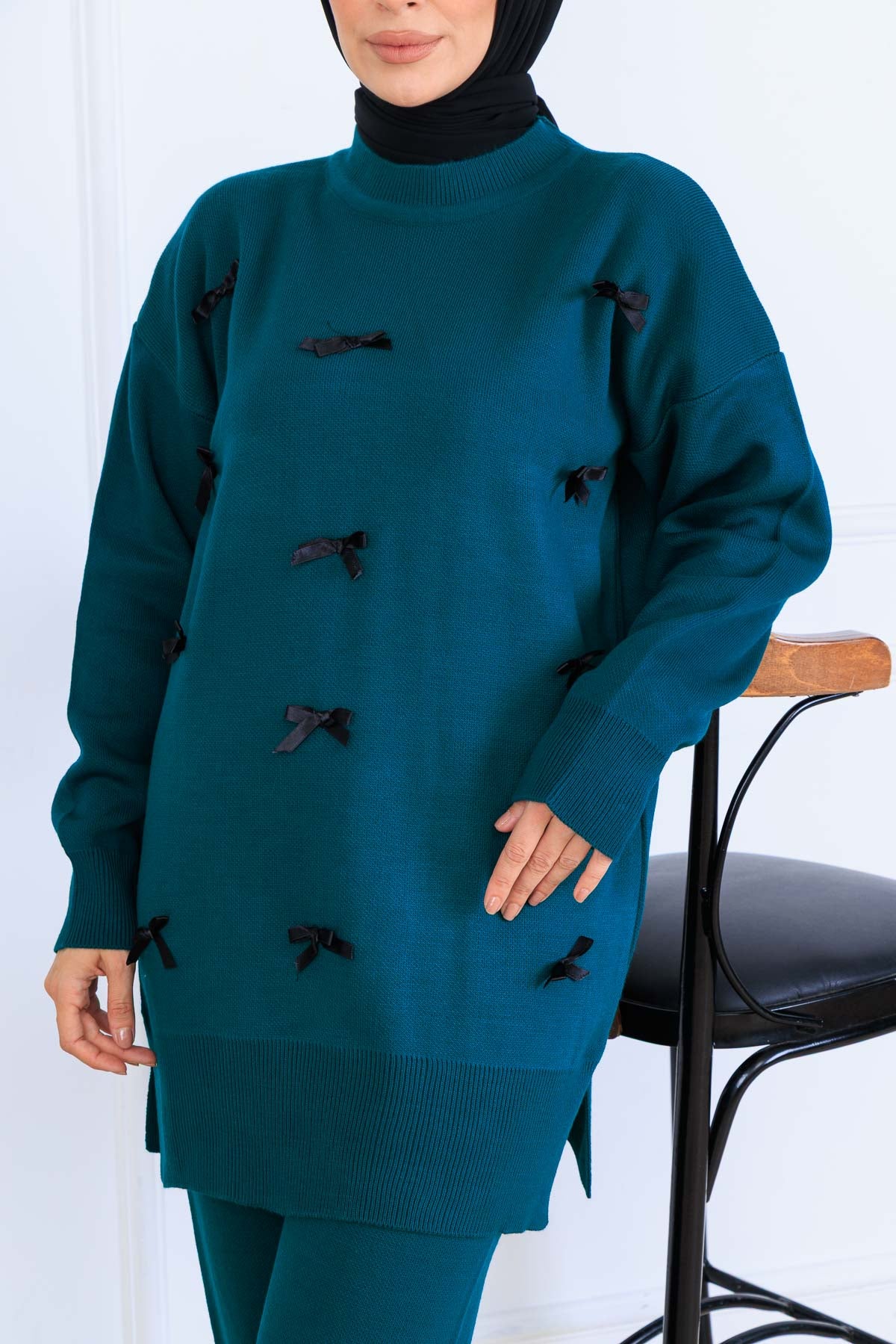 BNG Women Fiyonk Detaylı Triko Takım S1106 Zümrüt Yeşili - Hyères