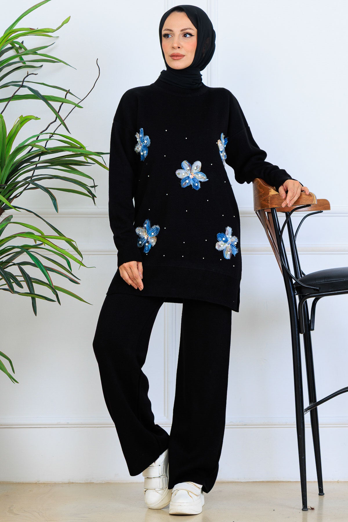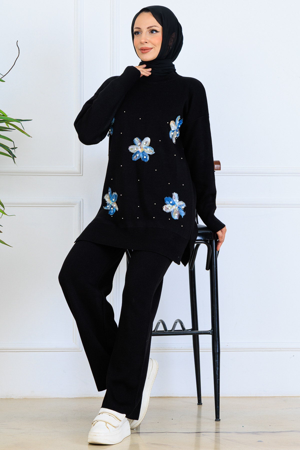 BNG Women Floral Knit Set S1006 Black - Buzău
