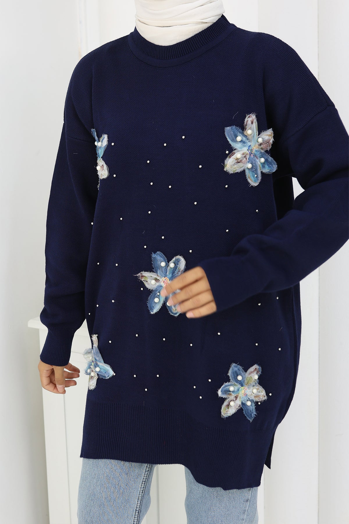 BNG Women Floral Knit Tunic S3010 Navy Blue - Schagen