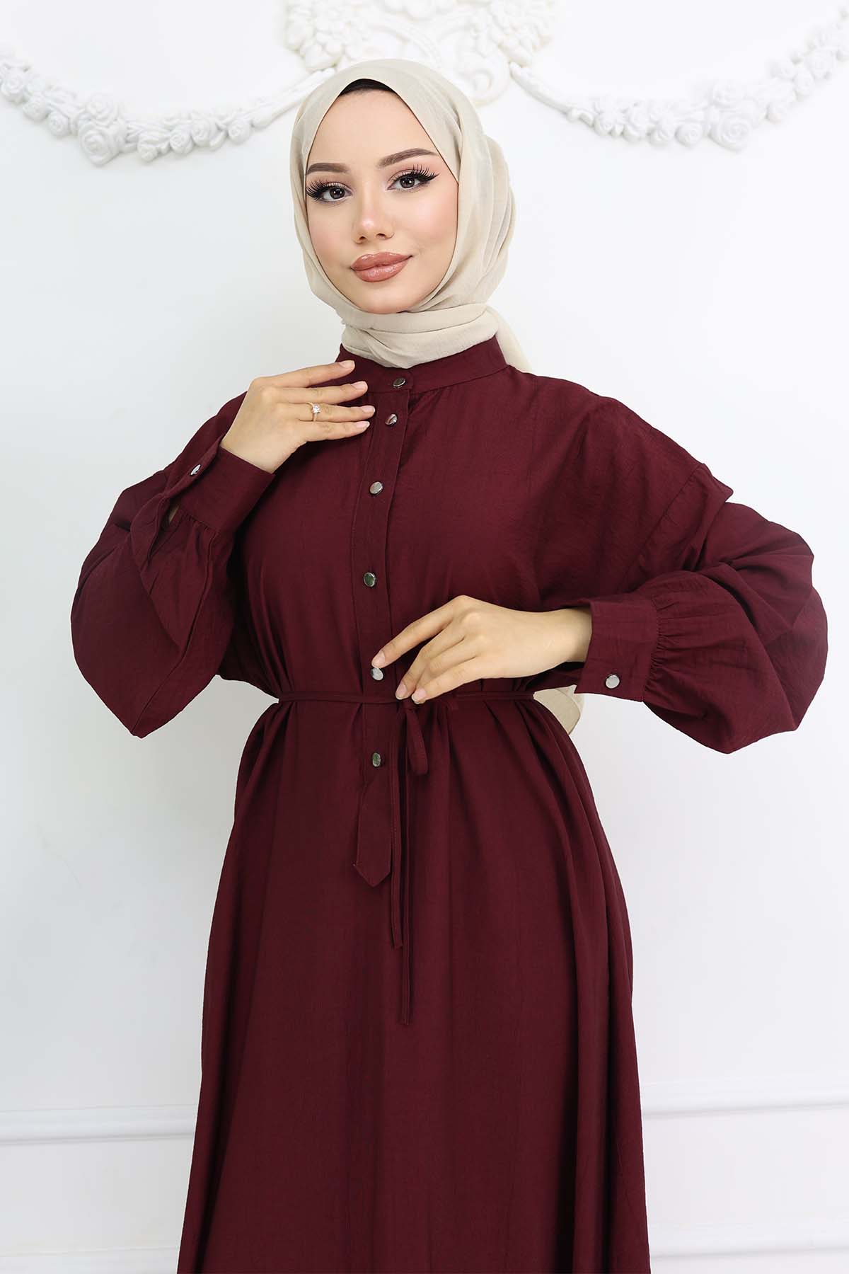 BNG Women Front Buttoned Tied Dress Burgundy 2242 - Cambridge