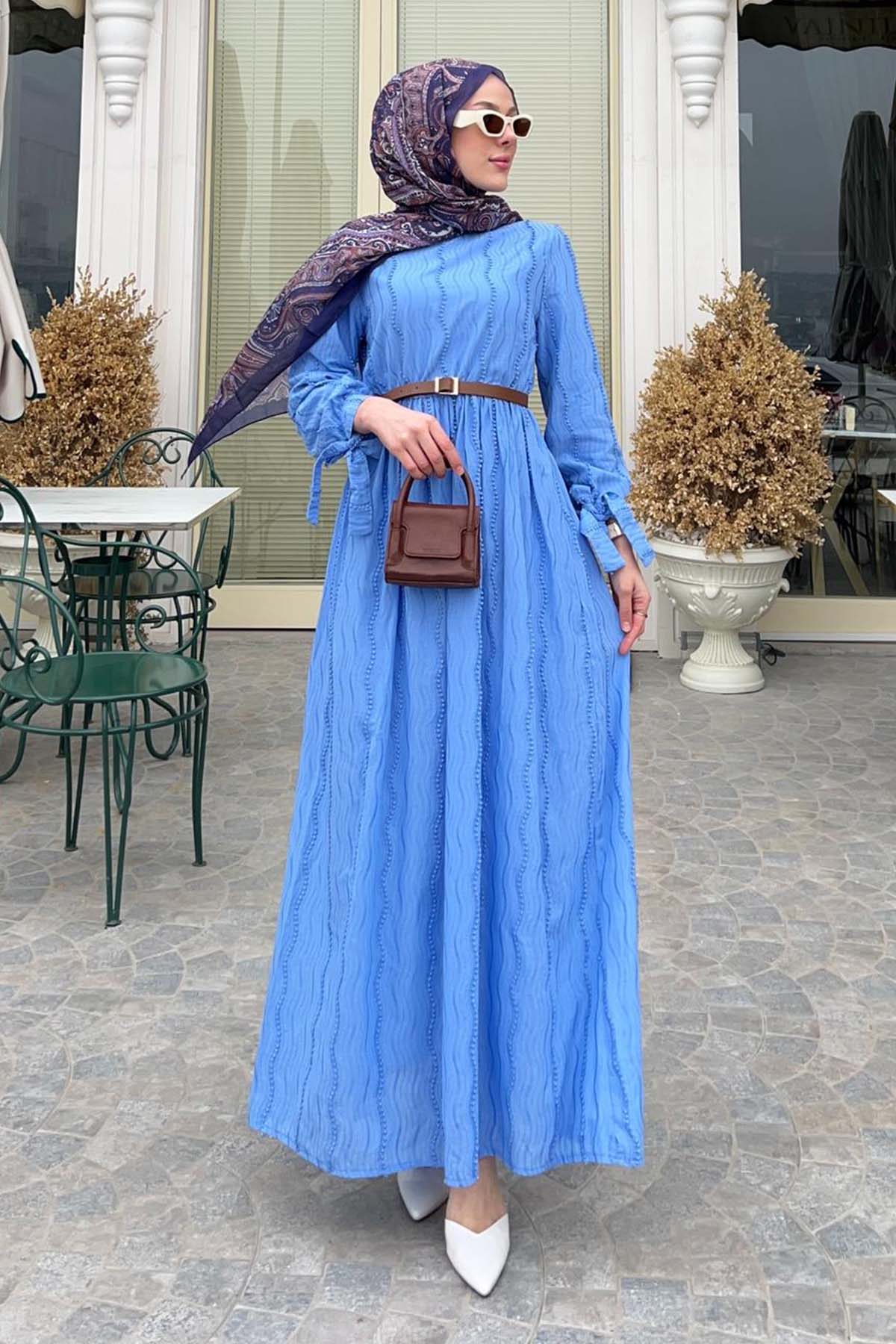 BNG Women Güpür Detaylı Tesettür Elbise Mavi 1008 - Streamwood